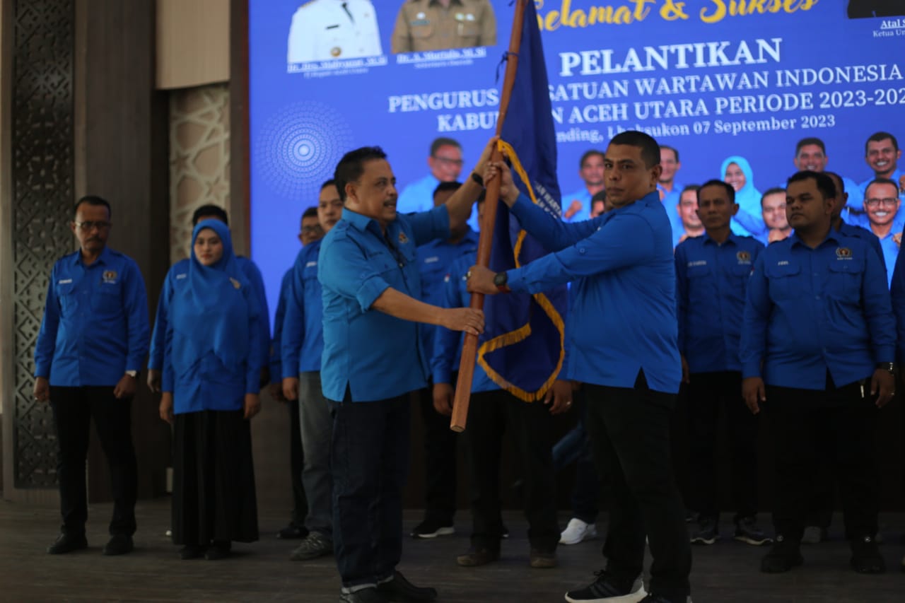 Ketua PWI Nasir Nurdin pada prosesi pelantikan itu menyerahkan bendera lambang PWI kepada Ketua PWI Aceh Utara Abdul Halim untuk dikibarkan di Aceh dengan menjunjung tinggi kode etik jurnalistik di kabupaten tersebut.