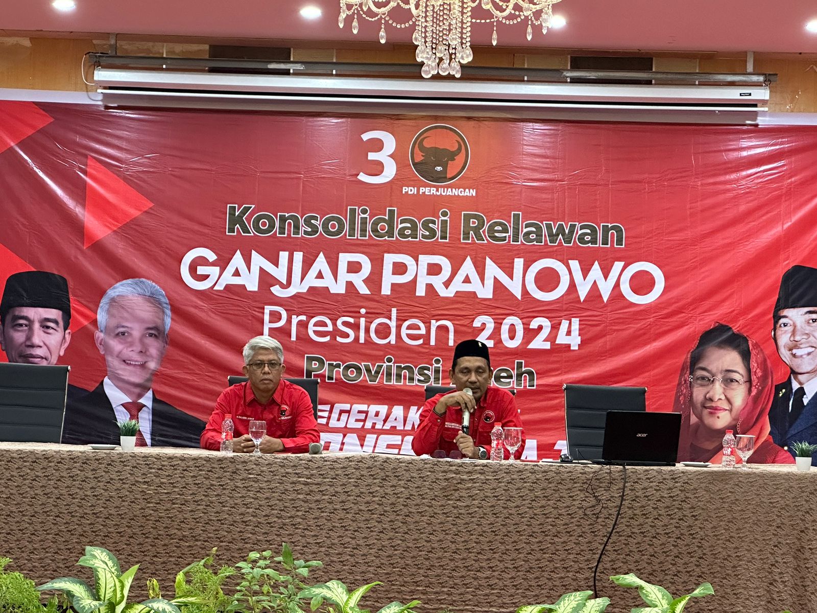 Forumrakyat.co.id | Banda Aceh – DPD PDI Perjuangan Aceh mengadakan rapat konsolidasi dengan relawan calon presiden Ganjar Pranowo di Hotel Permata Hati Ulee Lheu Banda Aceh.