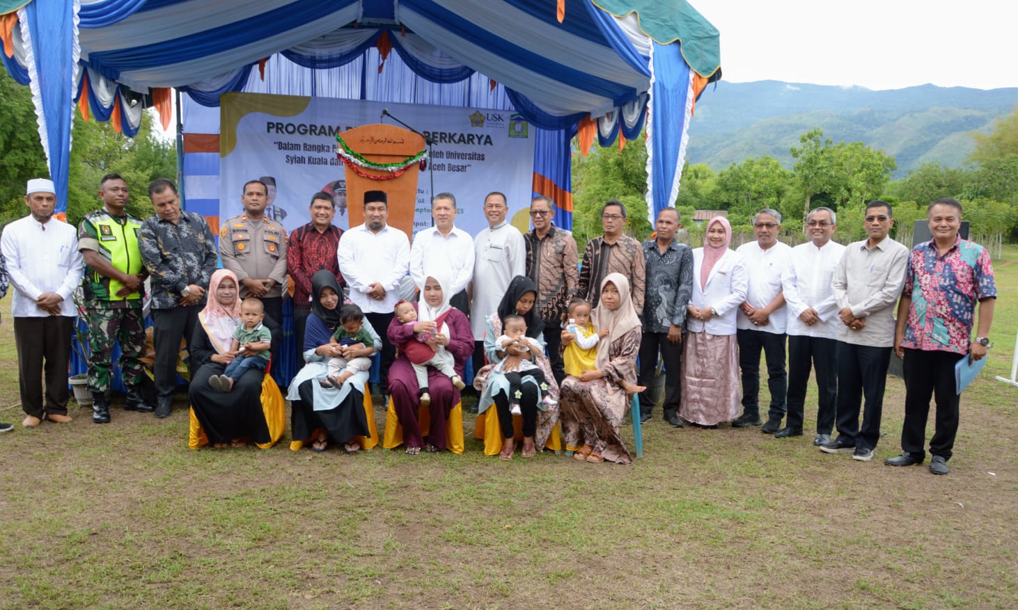 Jantho. Forumrakyat.co.id – Dalam rangka menurunkan angka stunting di Kabupaten Aceh Besar, Penjabat (Pj) Bupati Aceh Besar Muhammad Iswanto S.STP, MM bersama Rektor Universitas Syiah Kuala (USK) Prof Dr Ir Marwan melaunching Program Profesor Berkarya di Lapangan Sepak Bola Gampong Lamtanjong, Kecamatan Sukamakmur, Aceh Besar, Jum’at (22/9/2023).