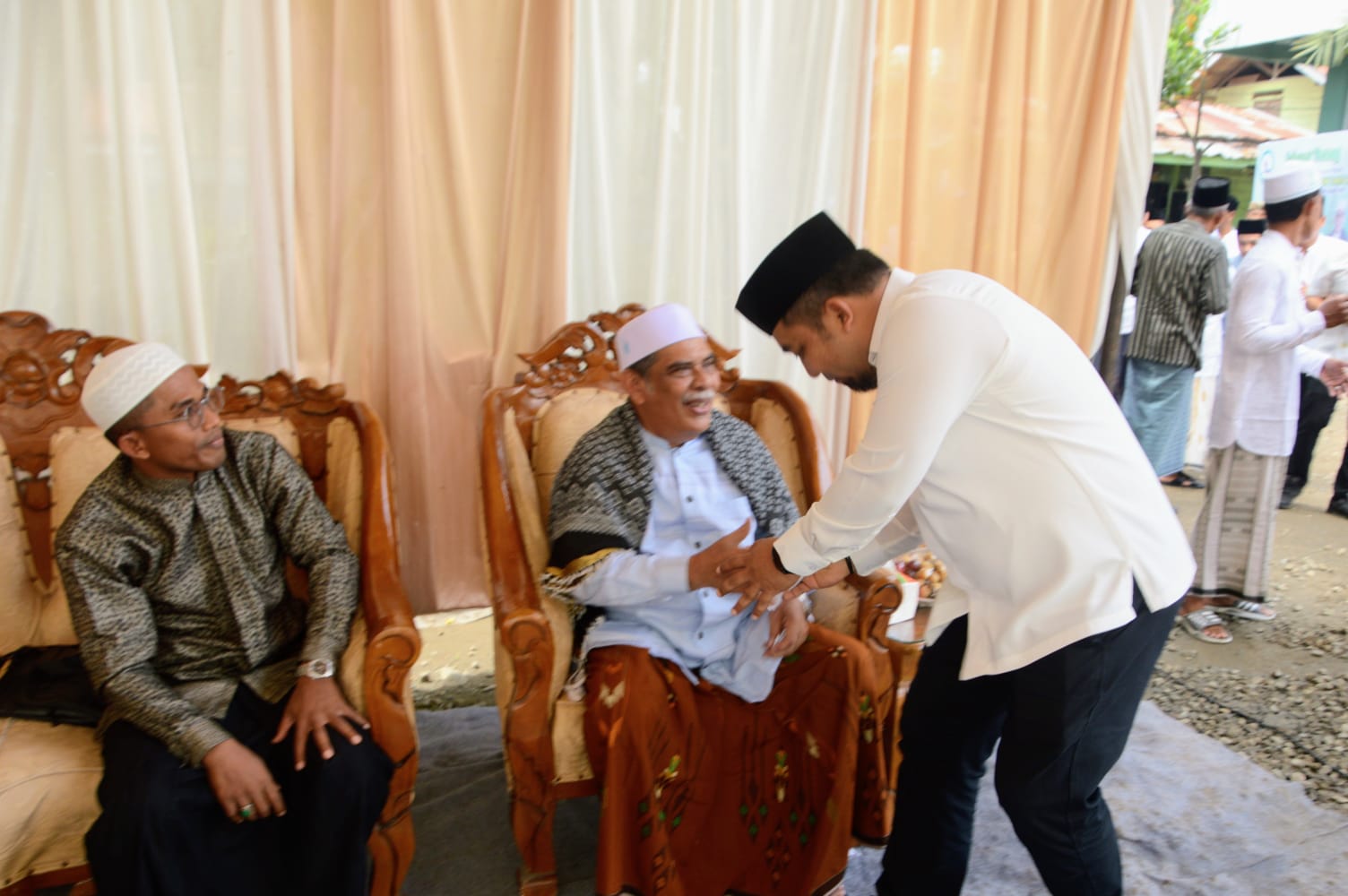 Tampak Pj Bupati Muhammad Iswanto hadir ke Dayah Ulee Titi sejak pagi bersama Kapolresta Banda Aceh Kombes Pol Fahmi Irwan Ramli SH SIK, Kapolres Aceh Besar AKBP Carlie Syahputra Bustamam SIK MH dan Anggota DPR RI Nazaruddin Dek Gam. Juga hadir sejumlah tokoh dan alim ulama dari Kota Banda Aceh dan Aceh Besar.
