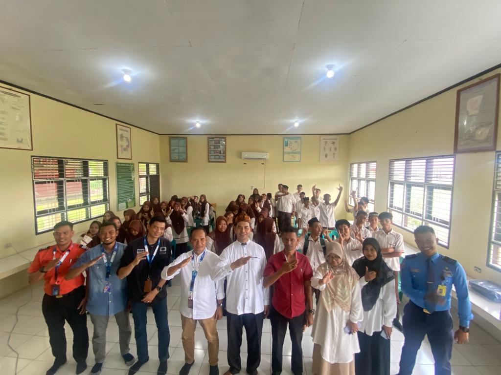 Kegiatan Angkasa Pura II mengajar diikuti oleh 50 siswa siswi kelas II dan III SMAN setempat, turut hadir Ketua Komite Sekolah Drs Marzuki.