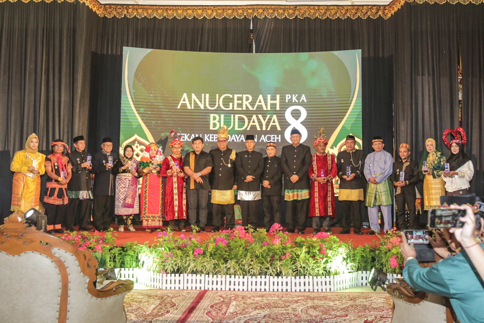 BANDA ACEH, Forumrakyat.co.id – Lembaga Wali Nanggroe Aceh memberikan penghargaan kepada 13 orang yang berjasa dan berkontribusi dalam dunia seni, adat, dan budaya. Malam Anugerah Budaya dalam rangkaian Pekan Kebudayaan Aceh (PKA) ke-8 itu berlangsung di Meuligoe Wali Nanggroe Aceh, Darul Imarah, Aceh Besar, Senin 6 November 2023.
