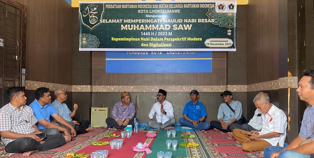 Lhokseumawe, Forumrakyat.co.id – Persatuan Wartawan Indonesia kota Lhokseumawe, mengadakan acara keagamaan, yakni peringatan maulid Nabi Besar Muhammad SAW.