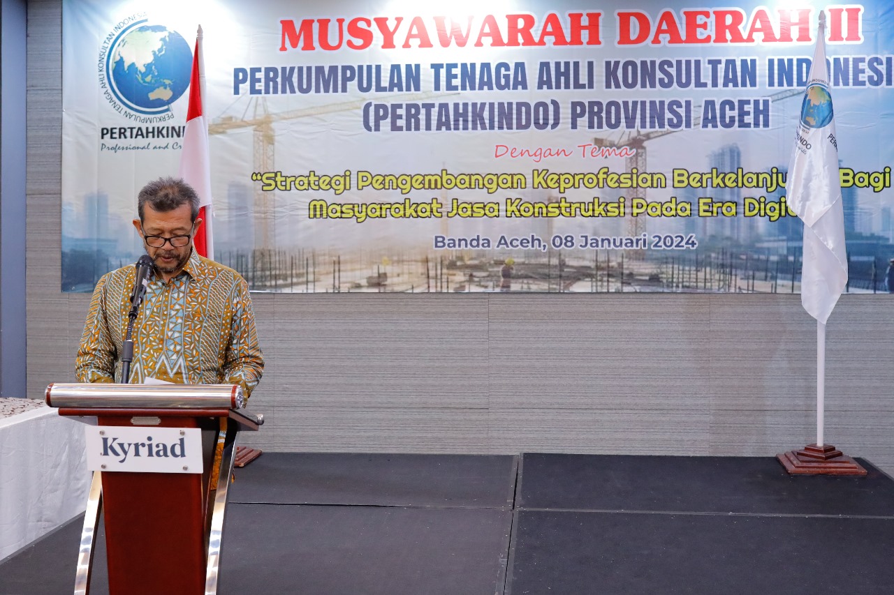 Banda Aceh. Forumrakyat.co.id – Mengacu kepada Anggaran Dasar dan Anggaran Rumah Tangga (AD/ART), Perkumpulan Tenaga Ahli Konsultan Indonesia (Pertahkindo) Provinsi Aceh melakukan Musyawarah Daerah (Musda) II yang dilaksanakan pada, Senin (08/01/2024) bertempat di Kyriad Muraya Hotel, Banda Aceh.