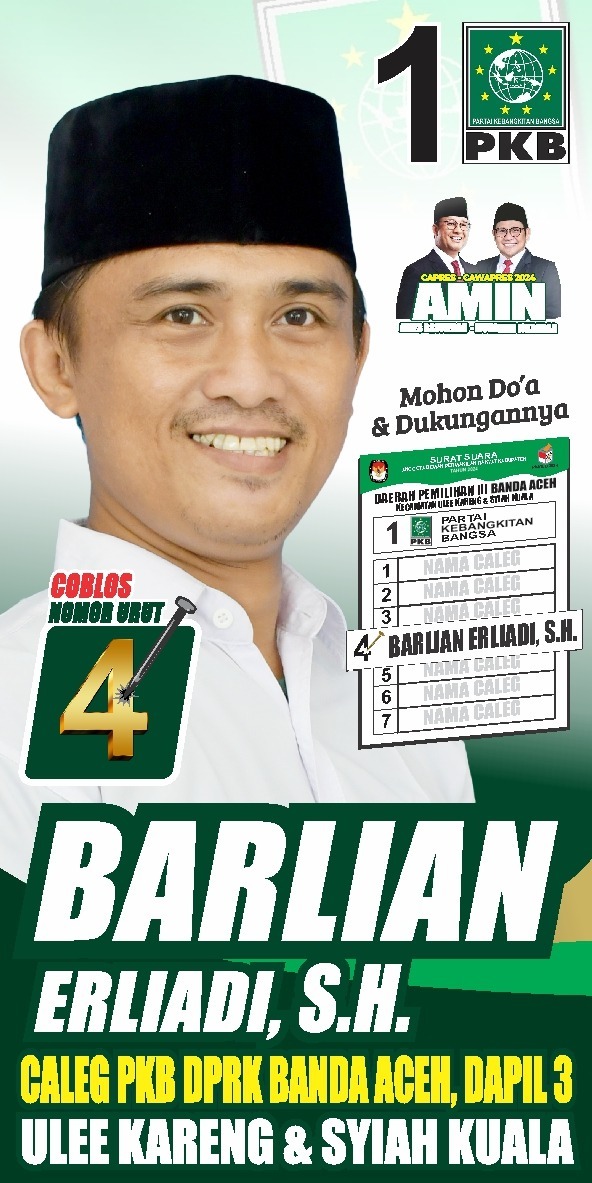 BANDA ACEH, FR – Menuju Dewan Perwakilan Rakyat Kota (DPRK) Banda Aceh, Barlian, berkomitmen mewakili aspirasi rakyat, dengan menawarkan Empat program unggulan. Program tersebut menjadi perioritas dari dana aspirasi dewan ketika terpilih menduduki DPRK Banda Aceh.