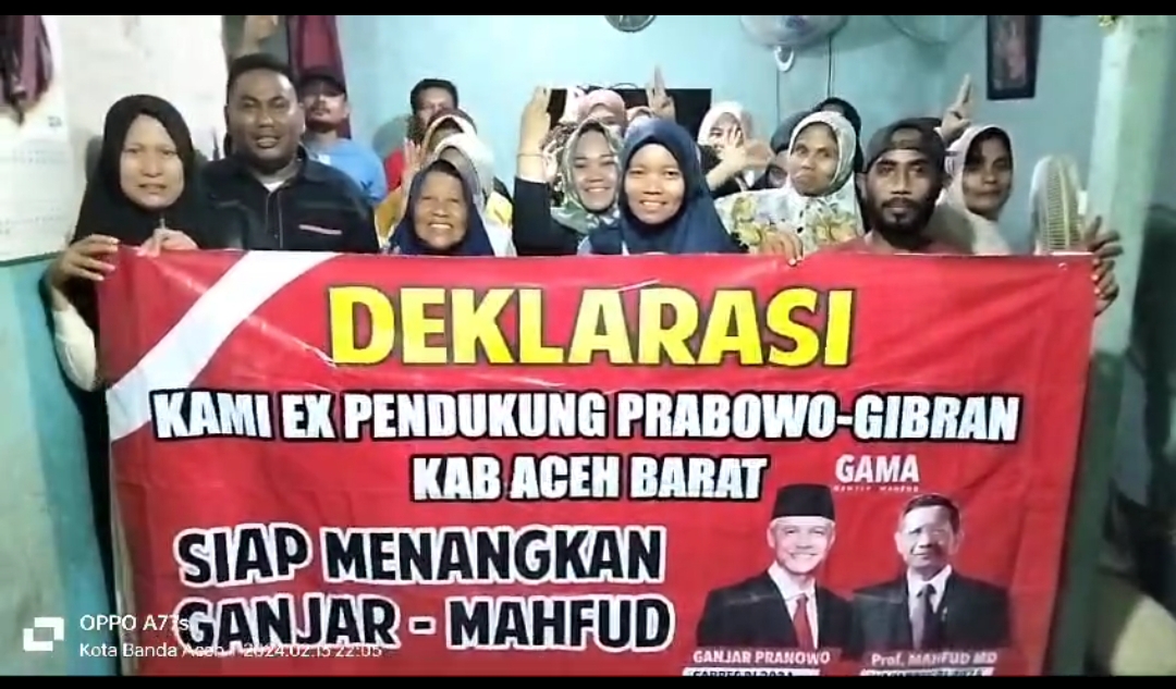 Banda Aceh,FR-Sejumlah Relawan Prabowo-Gibran di Tiga Kabupaten di Provinsi Aceh resmi mengalihkan dukungan kepada Ganjar-Mahfud, Minggu (10/02/04).