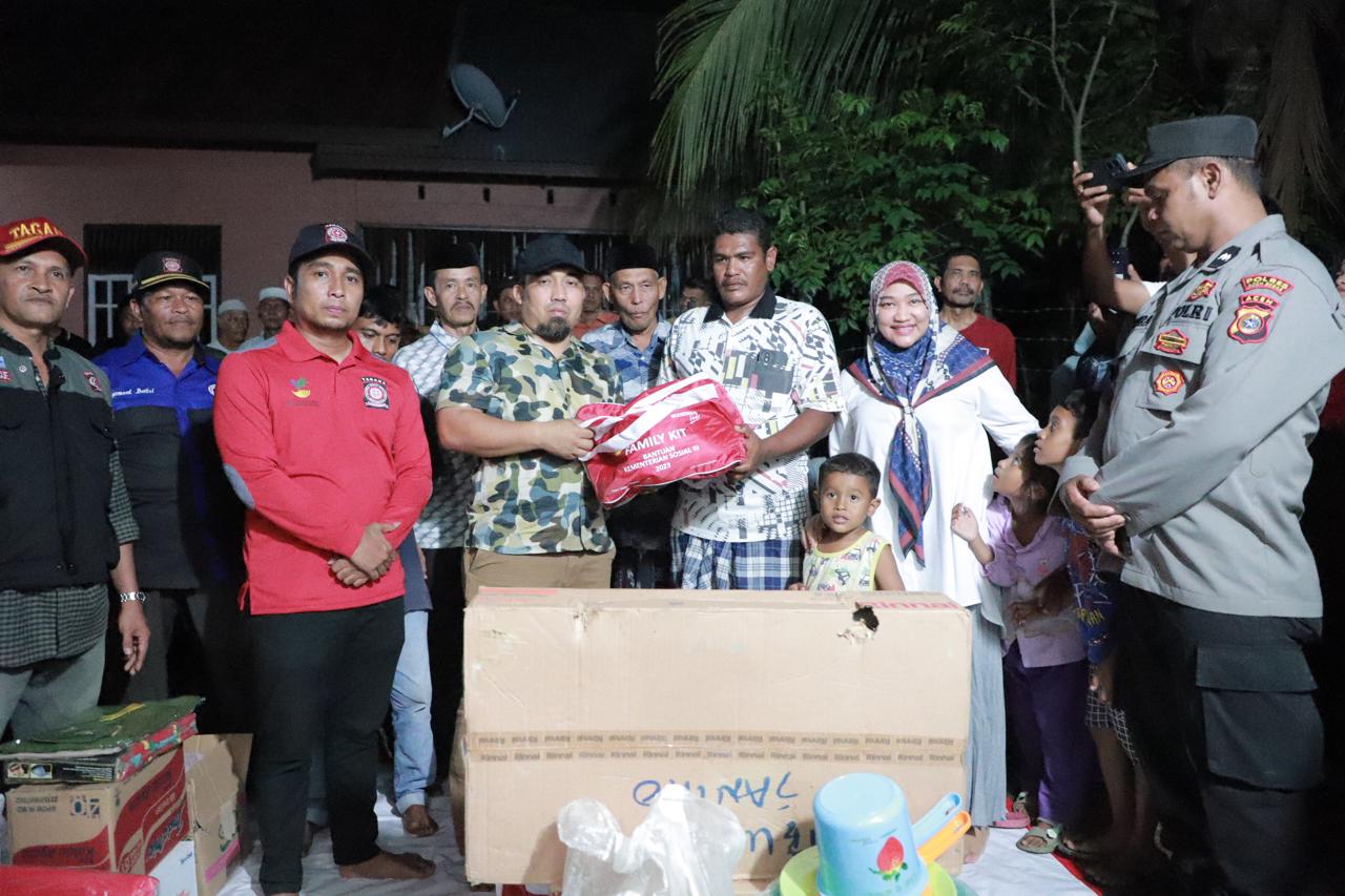Jantho. FR – Penjabat (Pj) Bupati Aceh Besar Muhammad Iswanto SSTP MM bersama Pj Ketua TP PKK Cut Rezky Handayani SIP MM mengantar sekaligus menyerahkan langsung bantuan masa panik kepada warga korban rumah terbakar di Gampong Seumet, Kecamatan Montasik, Rabu (17/07/2024) malam.