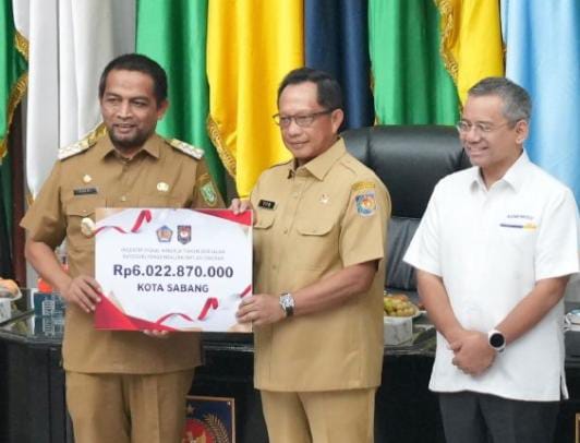 Dinilai berhasil mengendalikan inflasi, Pemerintah Kota (Pemko) Sabang meraih penghargaan insentif fiskal kinerja tahun berjalan dari pemerintah pusat. Penghargaan insentif fiskal tersebut diserahkan langsung oleh Mendagri Tito Karnavian bersama Menteri Keuangan Sri Mulyani di Jakarta.