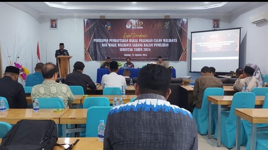 Sabang, FR – Pemilihan Kepala Daerah (Pilkada) semakin dekat Komisi Independen Pemilihan (KIP) Kota Sabang, melakukan Rapat Koordinasi Persiapan Pendaftaran Bakal Pasangan Calon (Bapaslon) Wali Kota dan Wakil Wali Kota. Rapat koordinasi tersebut digelar di Mata Ie Resort, Kamis (22/08/2024).