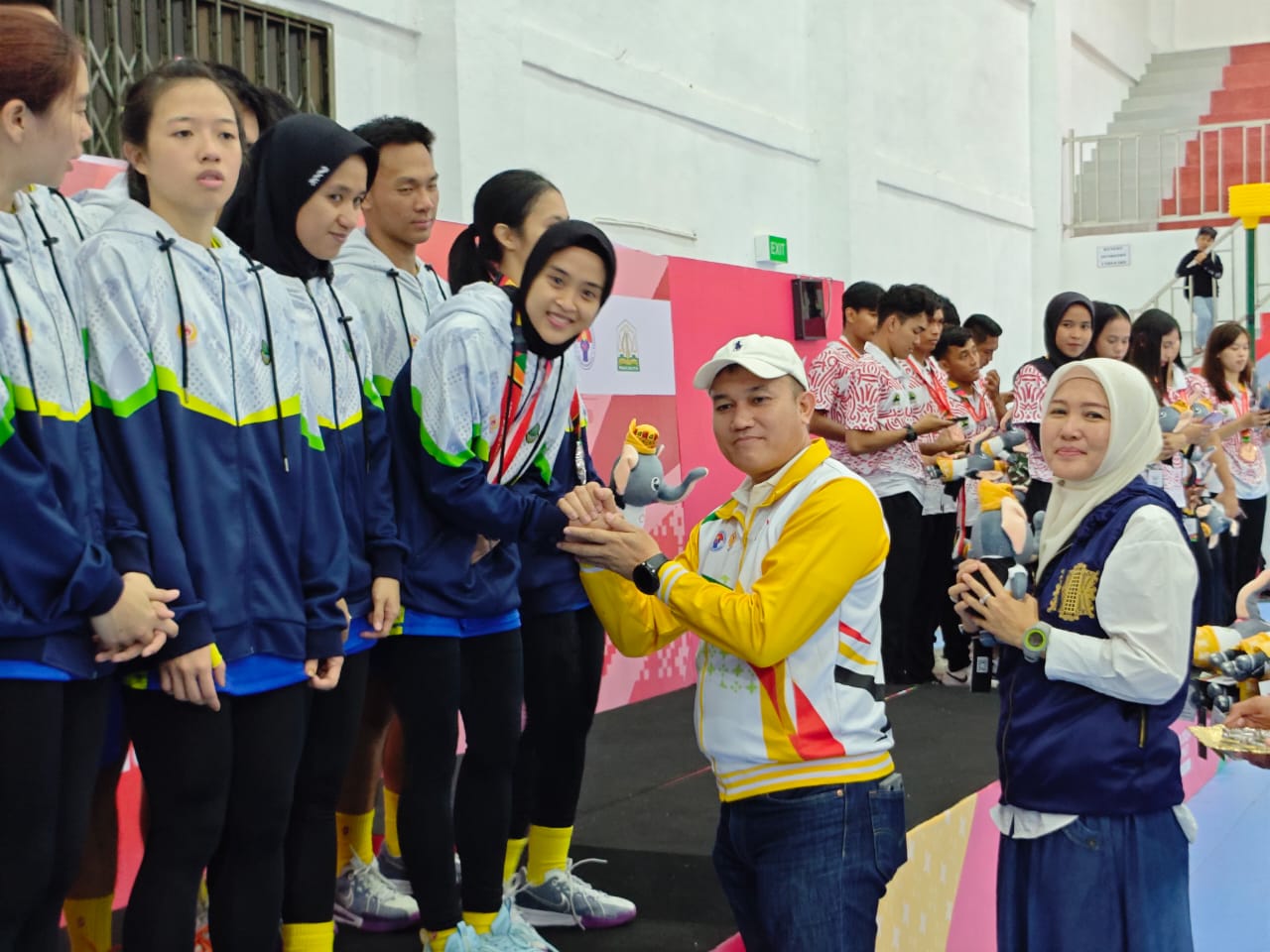 Kapolres Sabang dan Ketua Bhayangkari turut menyerahkan piala kepada pemenang Tim Korfball Jawa Barat di GOR Merah Putih Sabang