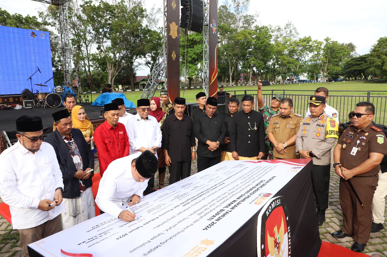 Deklarasi Kampanye Damai dilakukan dengan penandatanganan Naskah Deklarasi Pemilihan Bupati dan Wakil Bupati Aceh Besar serta penglepasan burung merpati yang diikuti oleh 4 (empat) Pasangan Calon Bupati dan Wakil Bupati Aceh Besar 2024, Dandim 0101 KBA Kolonel CZI Widya Wijanarko SSos MTr Han, Kapolres Aceh Besar AKBP Sujoko, Kajari Aceh Besar Jemmy Novian Tirayudi SH MH jajaran Fokopimda lainnya, partai pendukung dan para undangan.