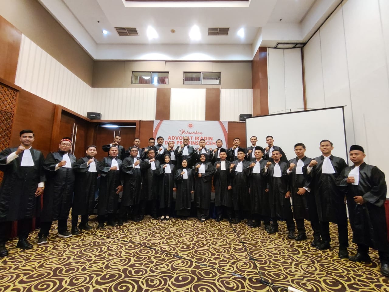 Banda Aceh, Fr – Sebanyak 27 orang advokat dilantik menjadi advokat muda DPD Ikatan Advokat Indonesia (IKADIN) Aceh di bawah kepemimpinan Safaruddin, SH, MH yang berlangsung di hotel Hermes Banda Aceh, Minggu (20/10/2024).