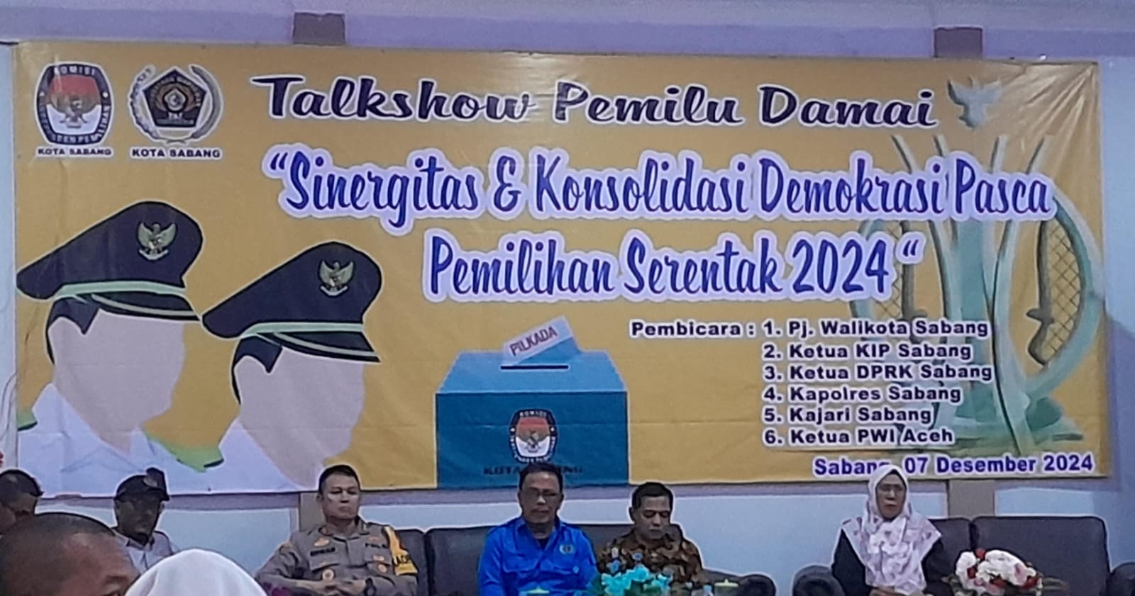 SABANG, FR – Pj Wali Kota Sabang Andri Nourman, AP, M.Si, secara resmi membuka Talkshow Pemilihan Umum (Pemilu) Damai dengan tema “Sinergitas dan Konsolidasi Demokrasi Pasca Pemilihan Serentak 2024”, yang diselenggarakan di aula Mata Ie Resort, Sabtu (07/12/2024).