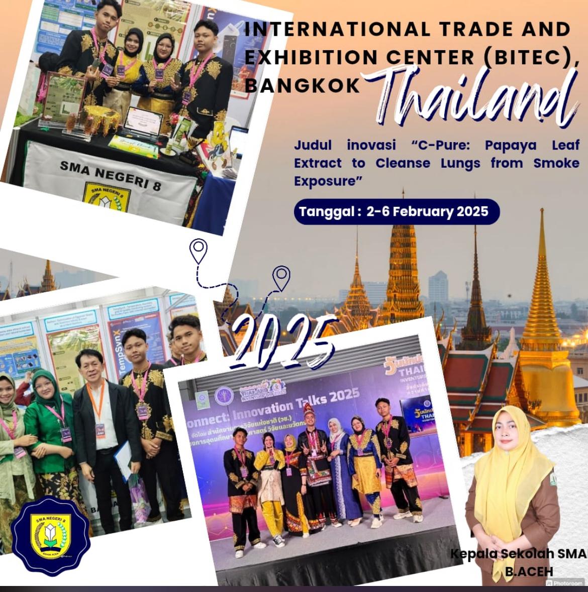 Forumrakyat.co.id | Banda Aceh, Empat orang siswa siswi dari SMA Negeri 8 Banda Aceh, yaitu Farissha Shakila, Dwi Jusi Ramadhani, Rahmat Al Qausar, dan Rakha Deand Athallah, berpartisipasi dalam kegiatan Karya Tulis Ilmiah bertaraf internasional yang diselenggarakan oleh International Intellectual Property, Invention, Innovation and Technology Exposition (IPITEx).