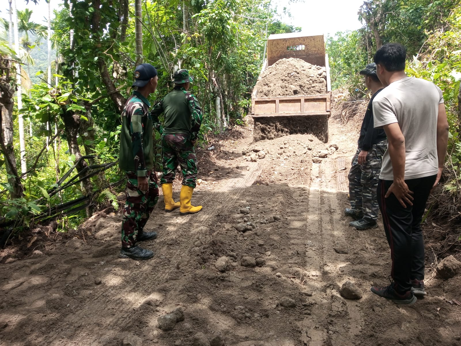Selain mendatangkan material pasir, personel TNI bersama warga setempat terus bekerja sama dalam berbagai tahapan pengerjaan, seperti pemerataan tanah, pemadatan jalan, serta pemasangan batu sebagai pondasi dasar. Sinergi antara TNI dan masyarakat menjadi salah satu kunci utama dalam keberhasilan program ini., tambahnya.