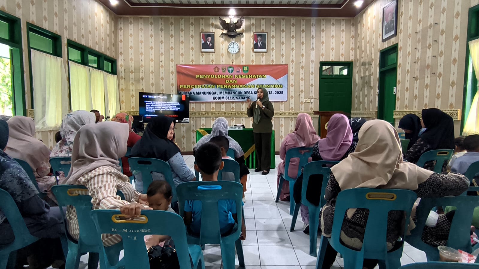 Acara penyuluhan yang berlangsung di ruang aula Makodim 0112/Sabang tersebut menghadirkan narasumber bidang kesehatan, memberikan paparan mengenai berbagai topik krusial, antara lain, menjelaskan tentang Pola makan dan gizi seimbang, dan pentingnya asupan nutrisi yang tepat untuk mendukung tumbuh kembang optimal pada balita.