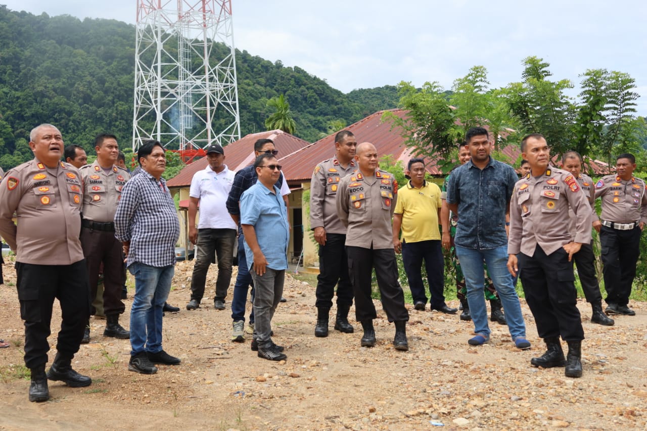 Kapolres Sabang didampingi para pejabat utama dan Kapolsek Sukakarya bersama anggota DPRK Sabang dari Fraksi Parnas Bersatu yang terdiri Ketua Fraksi Darmawan dari Partai Bulan Bintang (PBB), Ketua Partai Amanat Nasional (PAN) Rizki Setiawan, Samsul Bahri PBB dan Usman Nasution PBB meninjau lokasi lahan rencana pembangunan rumah dinas Polsek Sukakarya.