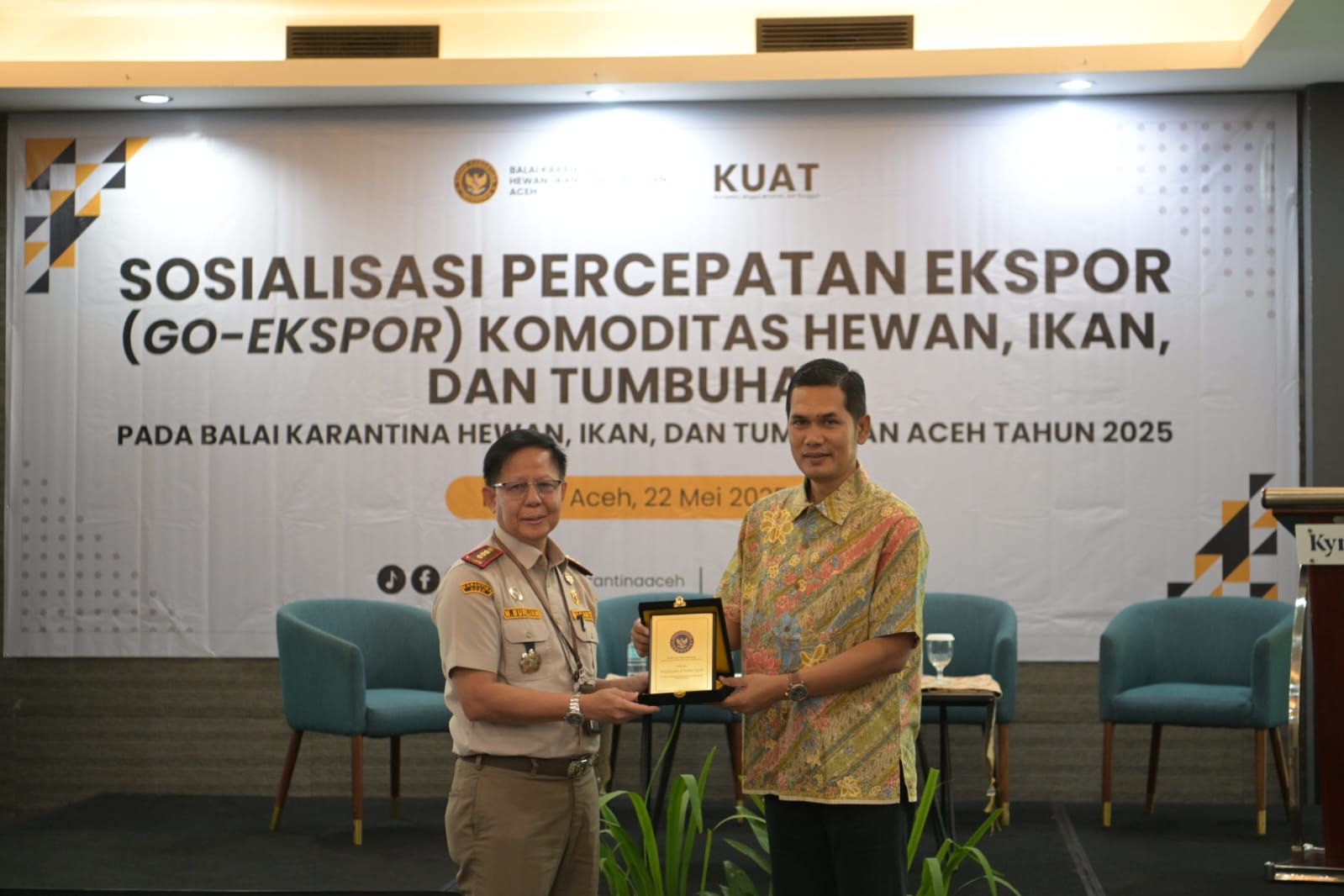 Hal tersebut disampaikan oleh Plt Sekretaris Daerah Aceh M Nasir, dalam sambutannya pada Sosialisasi Percepatan Ekspor (Go-Ekspor) Komoditas Hewan, Ikan dan tumbuhan, di Aula Kyriad Muraya Hotel, Kamis (22/5/2025).