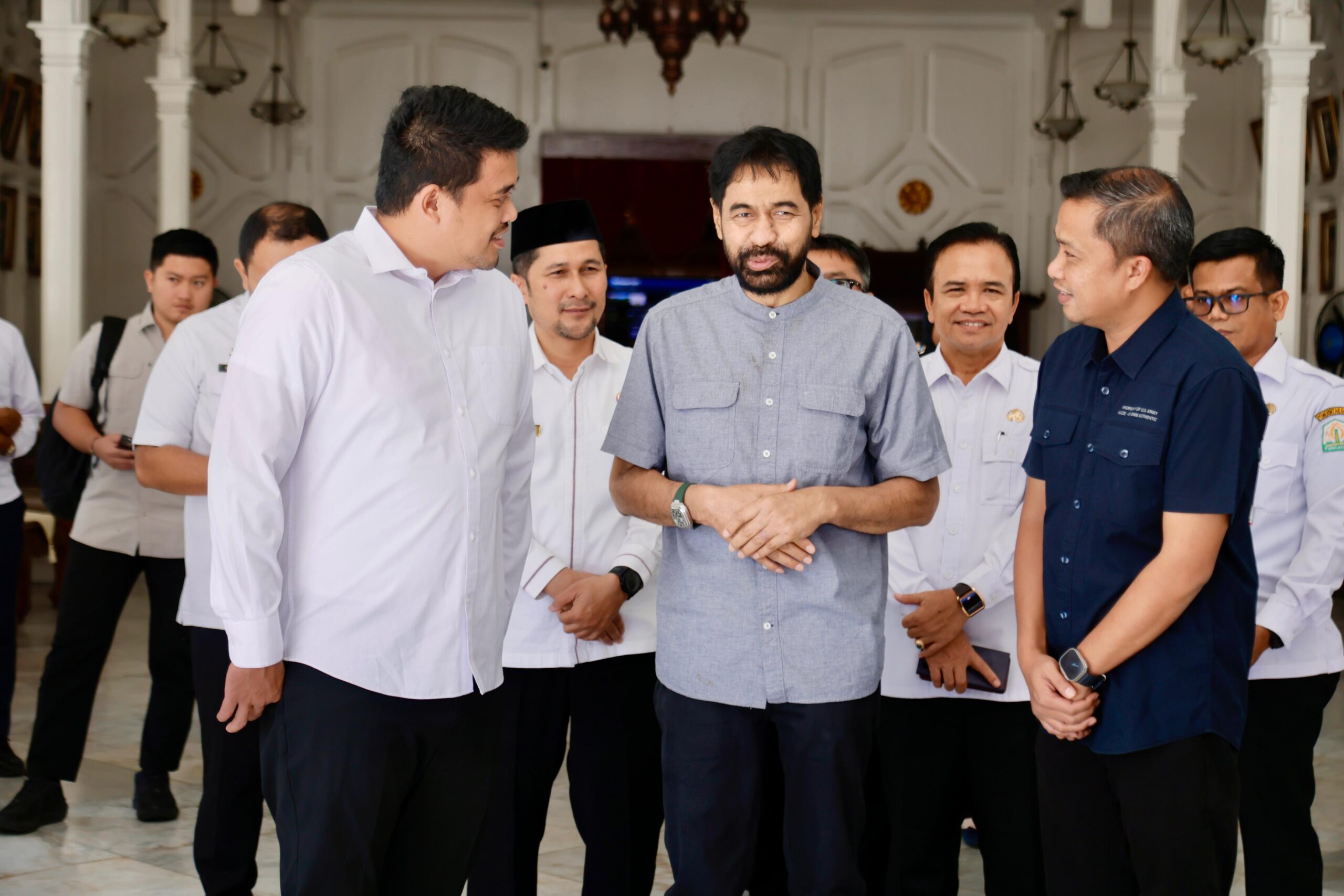 BANDA ACEH, FR — Gubernur Aceh, Muzakir Manaf atau Mualem menerima kunjungan silaturahmi Gubernur Sumatera Utara Bobby Nasution dan Bupati Tapanuli Tengah Masinton Pasaribu, di Pendopo Gubernur Aceh, Rabu (4/6/2025).