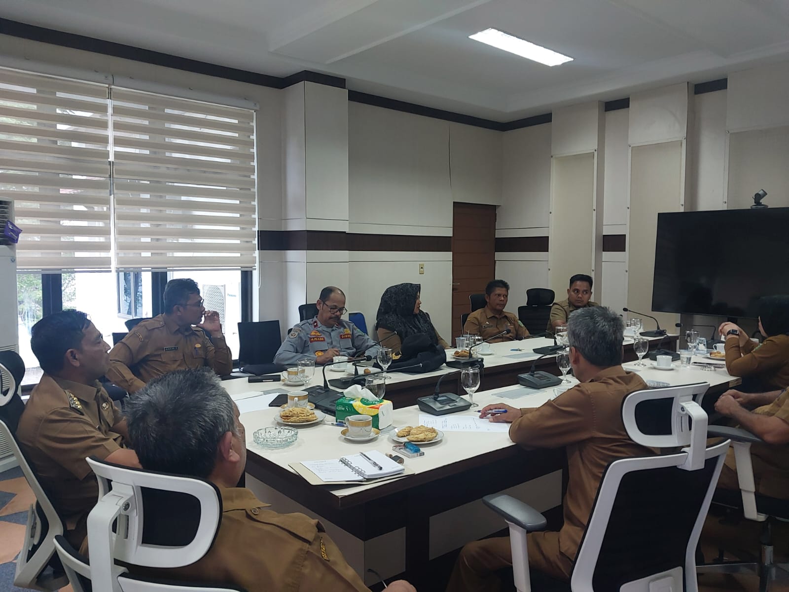 Pj Wali Kota Sabang bersama pejabat terkait dalam rapat persiapan pengambilan sumpah dan pelantikan Wali Kota dan Wakil Wali Kota terpilih Zulkifli H Adam – Drs H Suradji Junus, di ruang rapat Pulau Klah lantai tiga kantor Wali Kota memimpin rapat persiapan tersebut.