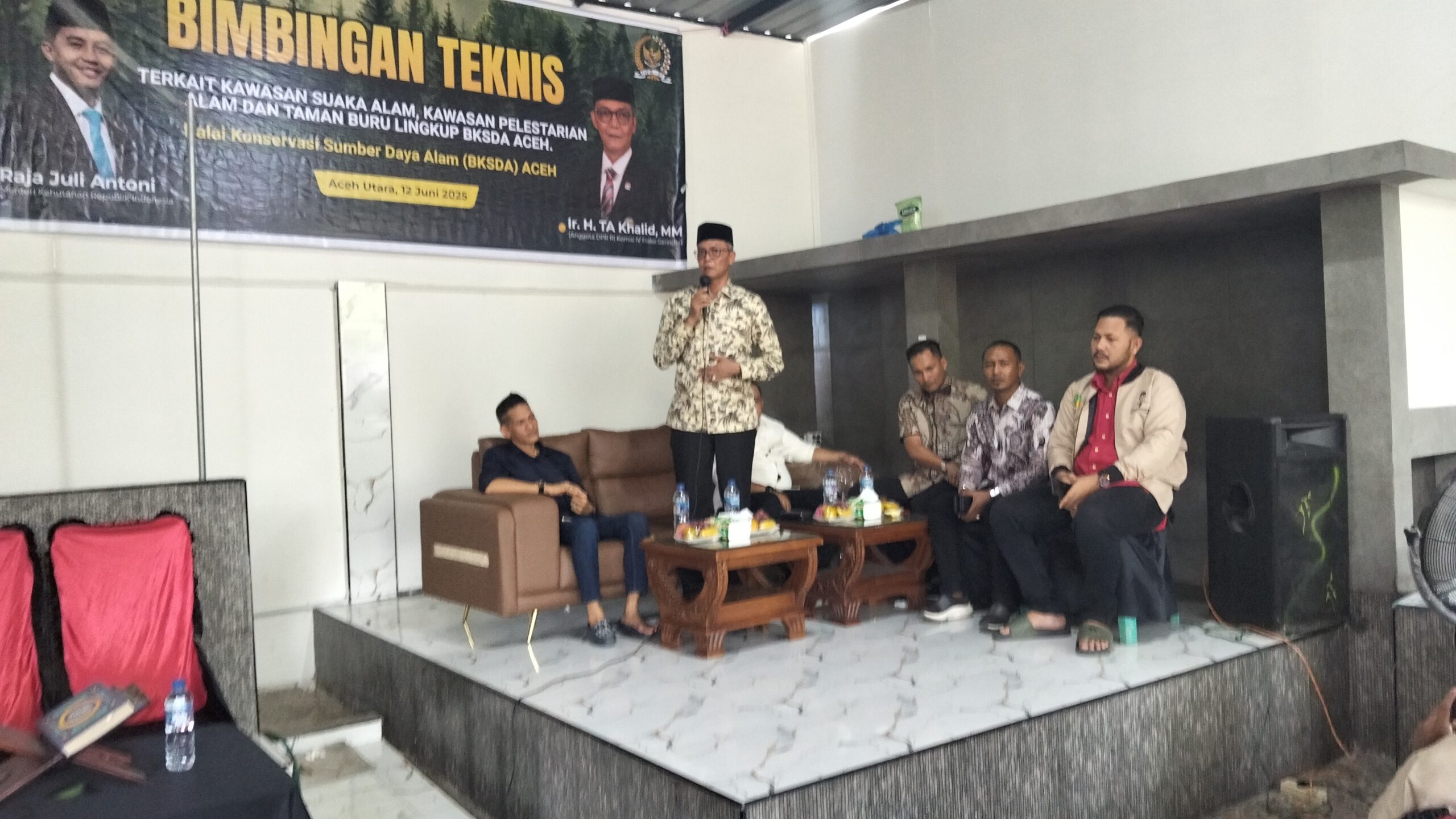 ACEH UTARA | FR — Anggota Komisi IV DPR RI Fraksi Gerindra Dapil Aceh II, Ir. H. T. A. Khalid, MM menggelar kegiatan reses masa persidangan III tahun sidang 2024–2025 sekaligus bimbingan teknis (Bimtek) terkait kawasan suaka alam, kawasan pelestarian alam, dan taman buru dalam lingkup Balai Konservasi Sumber Daya Alam (BKSDA) Aceh.