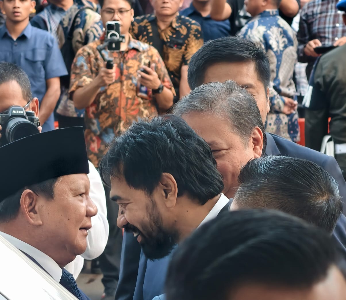Muzakir Manaf yang mengenakan setelan jas hitam terlihat antusias mengikuti kegiatan bertaraf internasional yang resmi ditutup Presiden Prabowo Subianto itu.