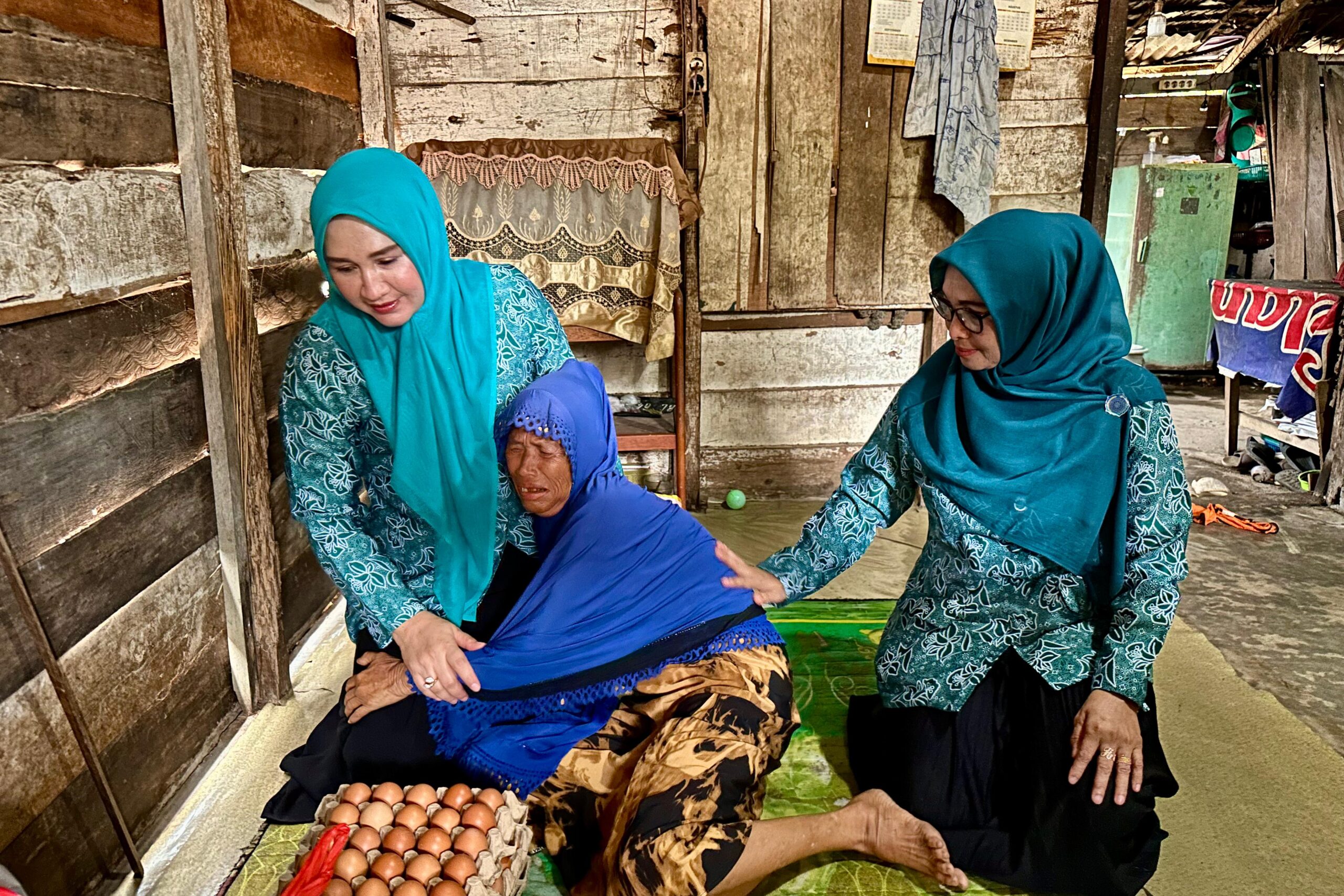 Marlina menyapa mereka dengan hangat, menanyakan kondisi kehidupan sehari-hari, serta memberi semangat agar tetap tabah dan terus berpikir positif dalam menjalani hidup. Ia turut memastikan bahwa mereka memiliki kelengkapan dokumen administratif sebagai syarat pengajuan bantuan rumah layak huni dari pemerintah. Di akhir kunjungan, Marlina menyerahkan bantuan kebutuhan pokok berupa beras, minyak goreng, dan telur untuk sedikit meringankan beban hidup mereka.