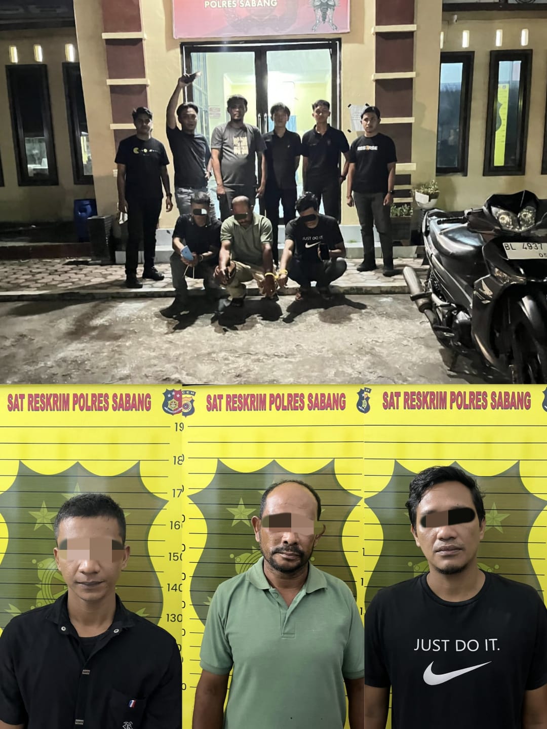 Menanggapi laporan tersebut, Tim Opsnal Sat Reskrim Polres Sabang yang dipimpin Kanit Opsnal Bripka Rahmat Saputra, langsung melakukan penyelidikan intensif hingga akhirnya berhasil mengamankan ketiga pelaku di lokasi berbeda