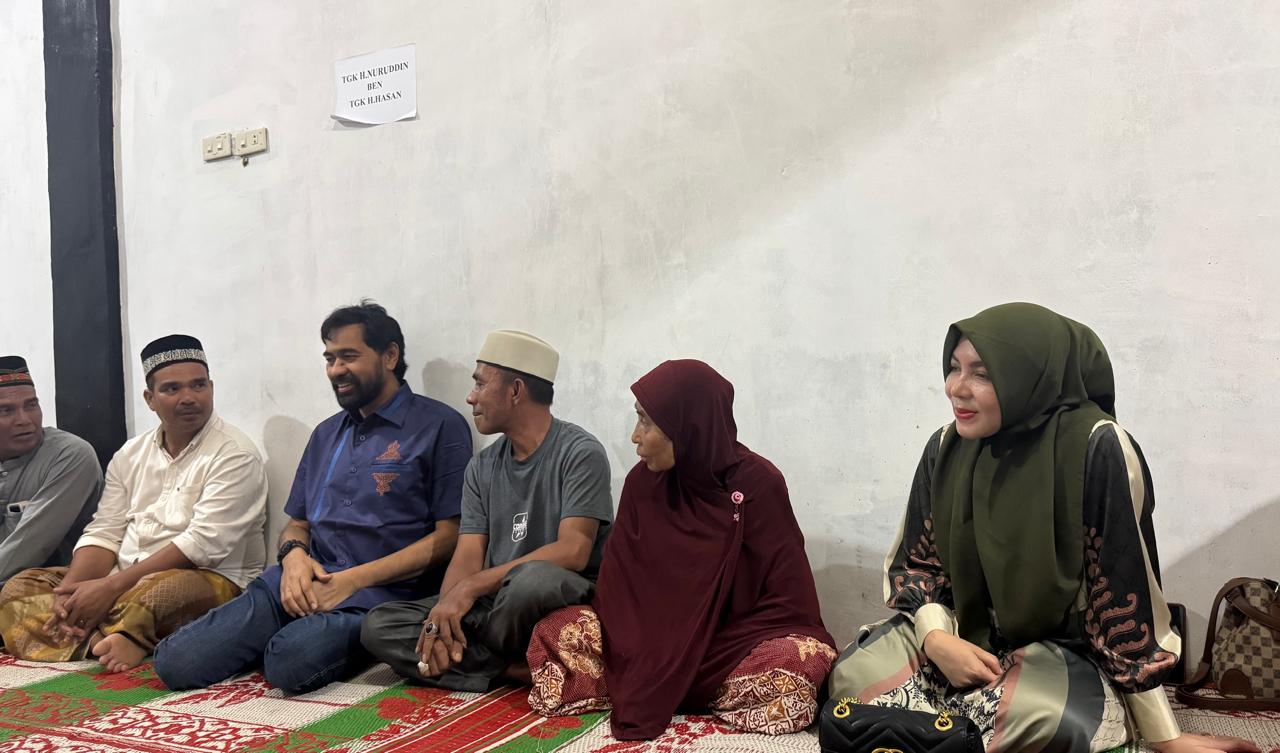 ACEH UTARA, FR — Gubernur Aceh Muzakir Manaf didampingi Anggota DPR Aceh Salmawati bertakziah ke rumah Alm. Tgk H.Nuruddin Bin Tgk H.Hasan (Ayah Haji Keutapang-Nisam) pada malam ketujuh, di Desa Keutapang, Kecamatan Nisam, Kabupaten Aceh Utara, pada Jumat, 20/6/2025 malam.
