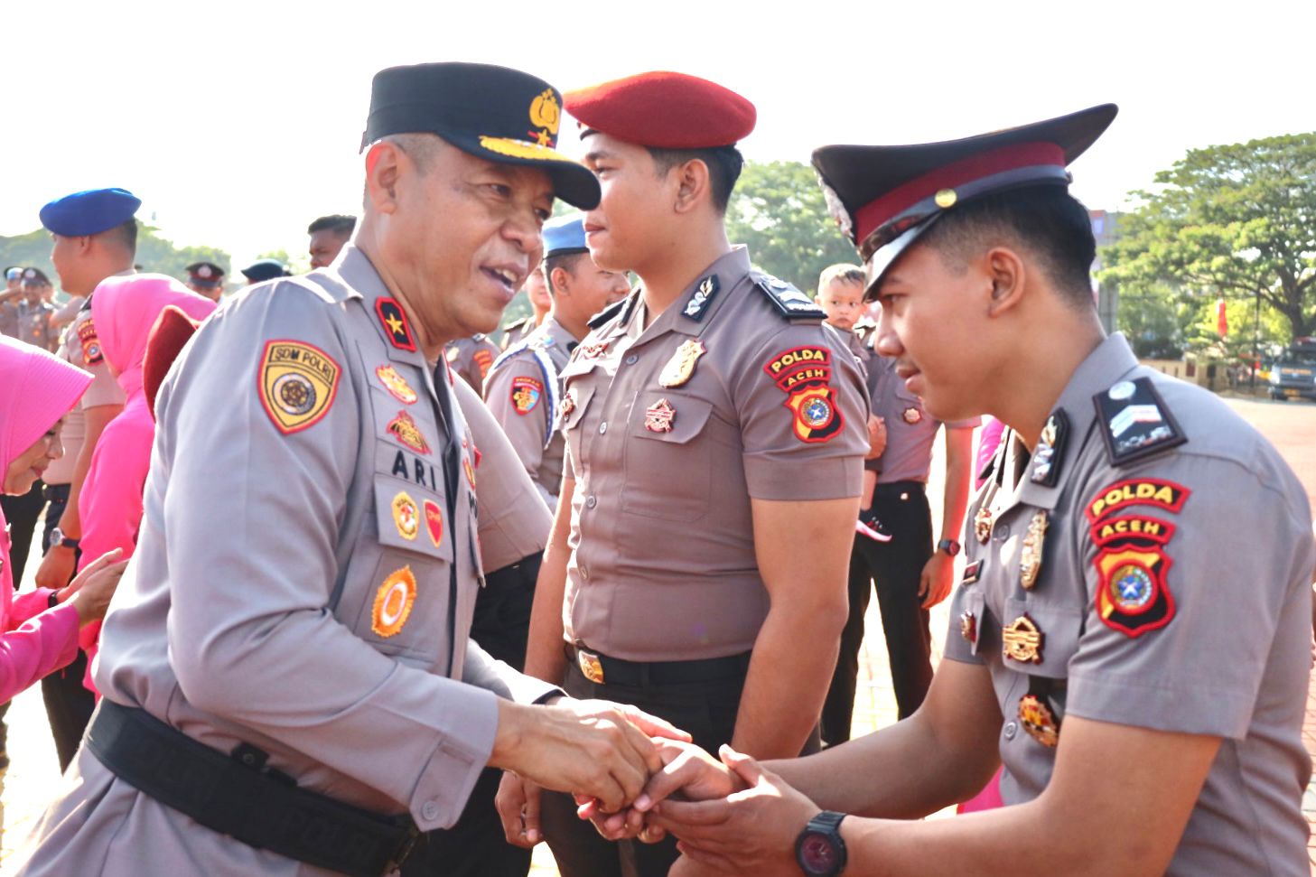 “Hari ini, 382 personel Polda Aceh dan 904 personel dari polres jajaran memperoleh kenaikan pangkat. Ini merupakan bentuk penghargaan dari negara atas dedikasi, integritas, serta pengabdian yang telah ditunjukkan dalam menjalankan tugas sebagai anggota Polri,” kata Wakapolda Aceh Brigjen Ari Wahyu Widodo, saat memimpin upacara laporan kenaikan pangkat di Mapolda Aceh, Senin, 30 Juni 2025.