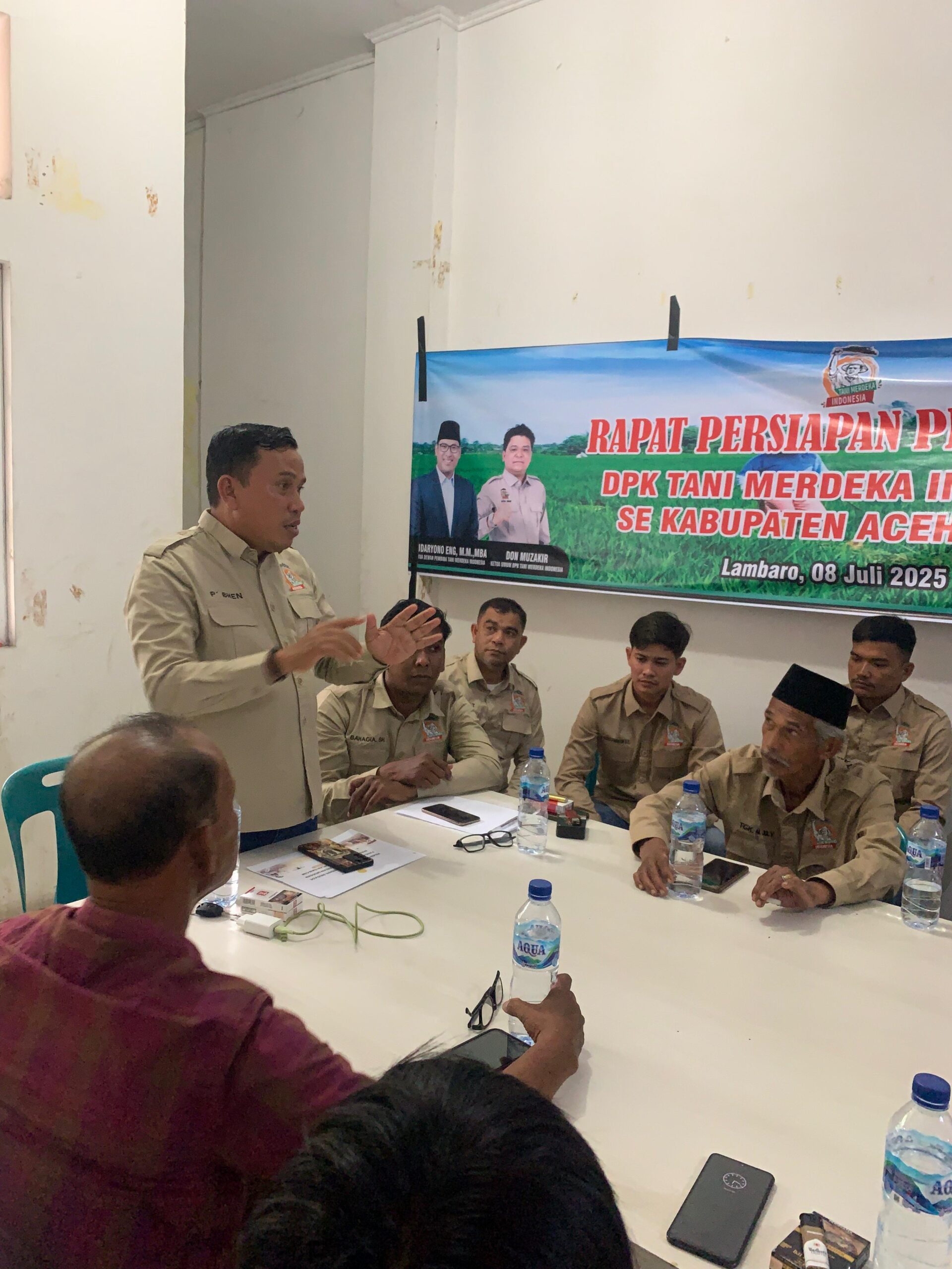 Langkah ini dimatangkan dalam rapat persiapan pelantikan para Dewan Pimpinan Kecamatan (DPK) Tani Merdeka yang digelar di Lambaro, Selasa, 8 Juli 2025. Pelantikan para pengurus tingkat kecamatan ini dijadwalkan berlangsung akhir Juli, juga di Lambaro.