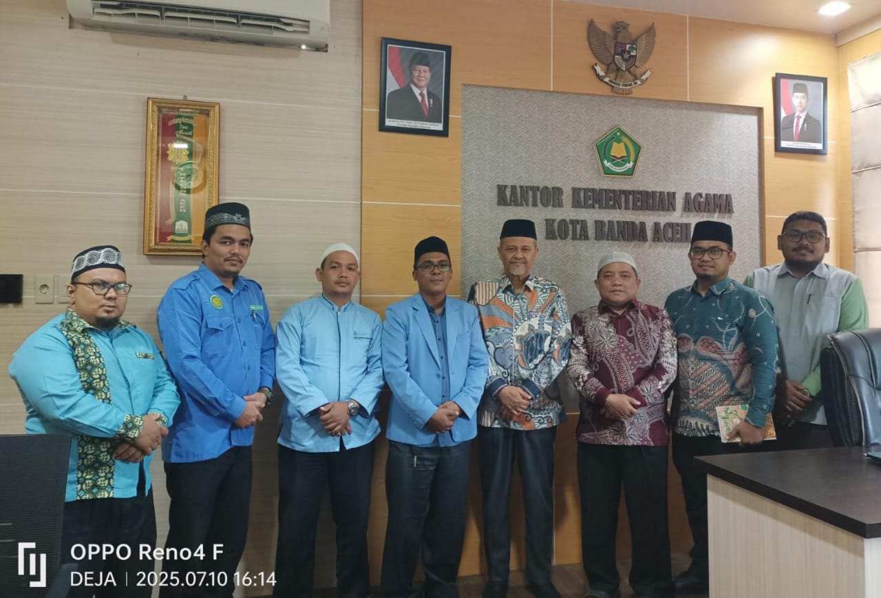 Banda Aceh, FR — Badan Komunikasi Pemuda Remaja Masjid Indonesia (BKPRMI) Kota Banda Aceh melaksanakan audiensi resmi ke Kantor Kementerian Agama (Kemenag) Kota Banda Aceh pada Kamis, 10 Juli 2025. Rombongan BKPRMI disambut langsung oleh Kepala Kantor Kemenag Kota Banda Aceh, H. Salman S.Pd. M.Ag didampingi oleh Kepala Seksi Bimbingan Masyarakat Islam (Kasi Bimas), Ustadz H. Akhyar, MA.
