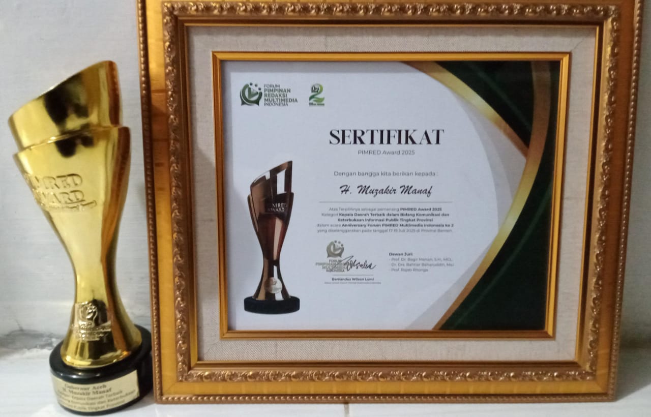 SERANG, FR — Gubernur Aceh, H. Muzakir Manaf, menerima penghargaan Pimred Award 2025 dari Forum Pimred Multimedia Indonesia dalam rangkaian peringatan Hari Ulang Tahun ke-2 organisasi tersebut. Acara berlangsung khidmat dan meriah di Hall Hotel Aston, Kota Serang, Provinsi Banten, pada Jumat, 18 Juli 2025.