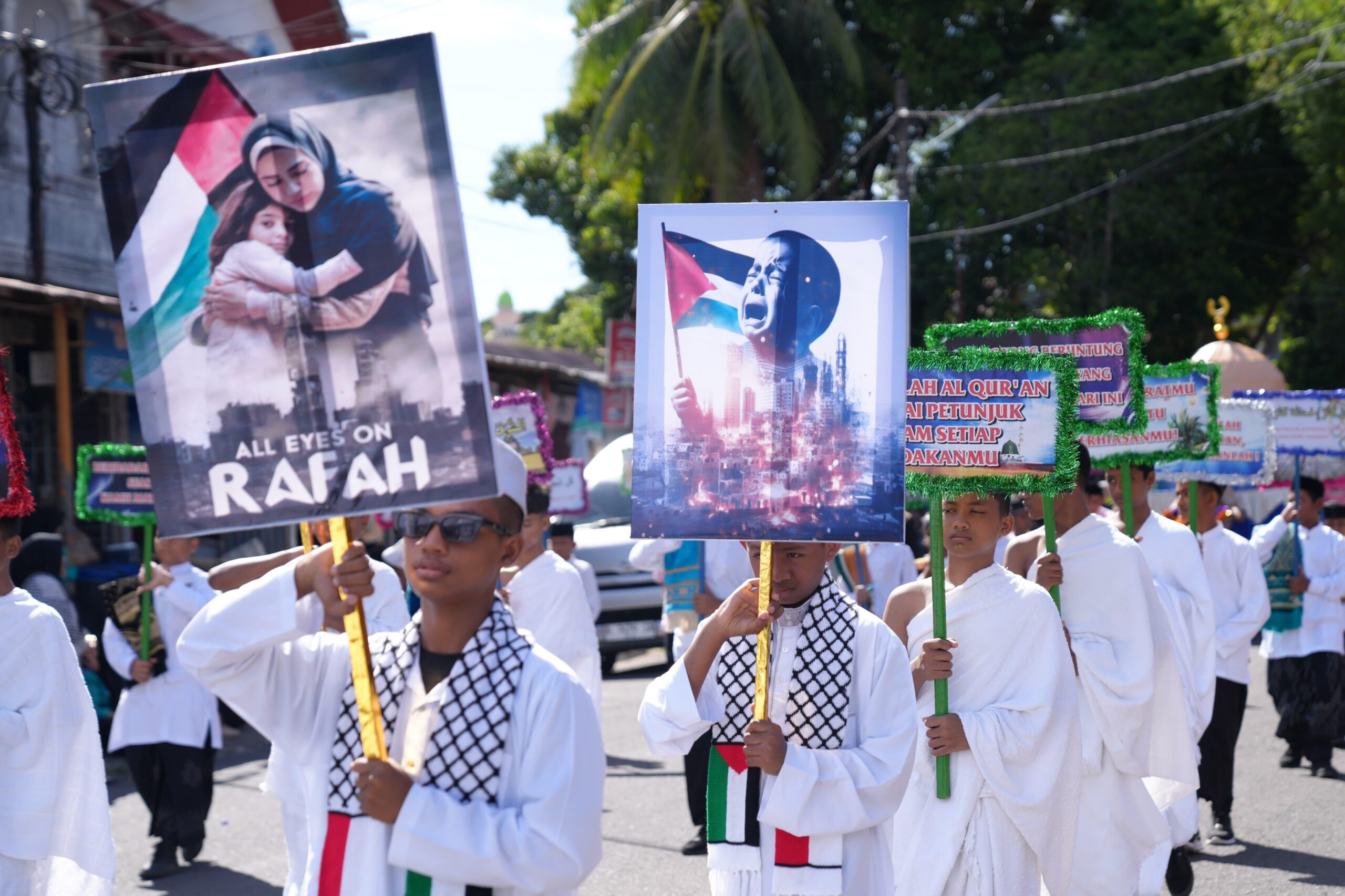 Sabang, (FR) – Pawai tahun baru Islam menjadi momen istimewa, yang diisi dengan berbagai aktivitas kreatif dan positif masing-masing sekolah di Kota Sabang. Semarakkan tahun baru Islam dengan menggaungkan nilai-nilai Islami, peserta pawai ta’aruf 1 Muharram 1447 Hijriah/2025 Masehi menampilkan hadrah dan rebana.