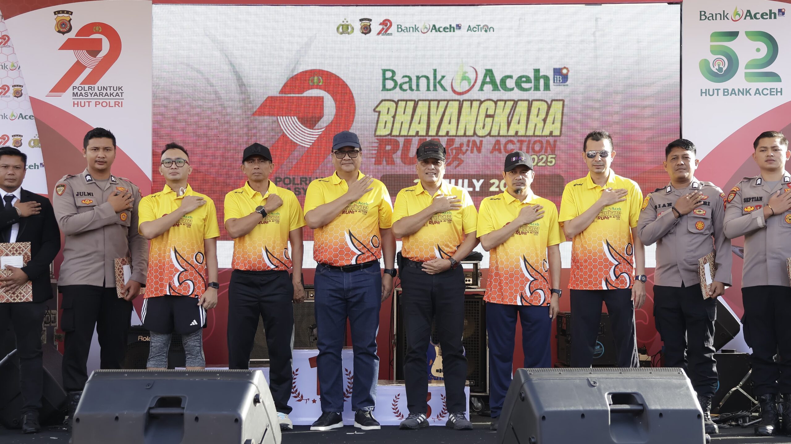 Di akhir sambutan, Kapolda menyampaikan terima kasih dan apresiasi setinggi-tingginya kepada seluruh panitia dan pihak yang telah mendukung terselenggaranya Bhayangkara Run 2025, terutama kepada PT Bank Aceh Syariah selaku sponsor utama.