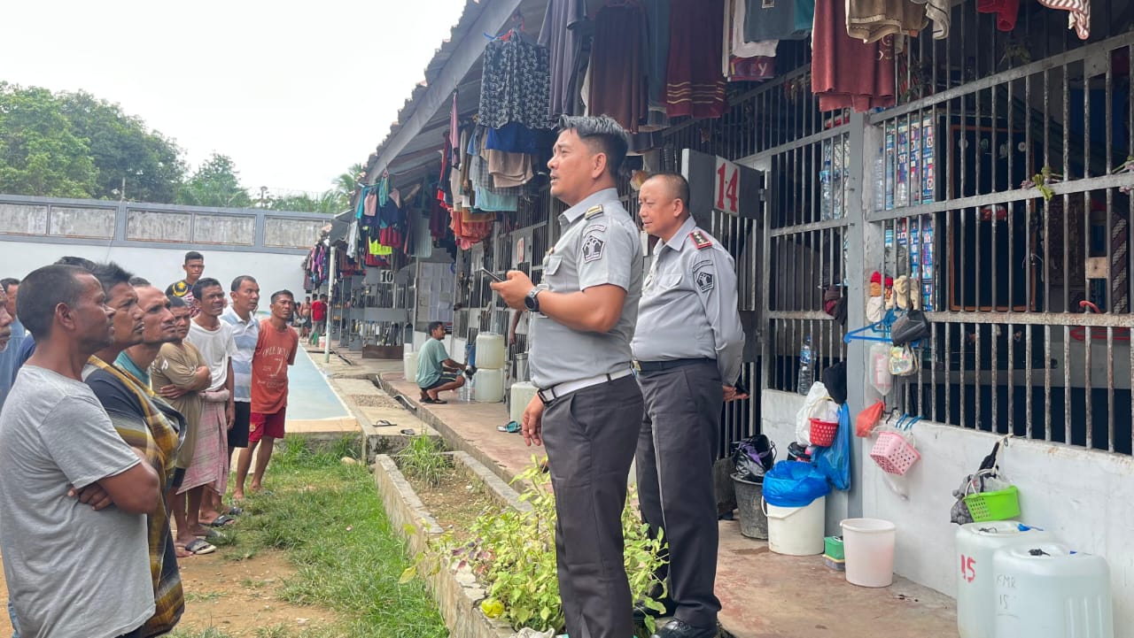 Forumrakyat |Aceh Timur – Dalam rangka menindaklanjuti arahan Menteri Imigrasi dan Pemasyarakatan terkait 13 Program Akselerasi yang mencakup pemberantasan peredaran Narkoba dan Handphone dilingkungan Lapas dan Rutan, Kepala Lapas Kelas IIB Idi, Bahtiar Sitepu didampingi Ka. KPLP, Staf, Petugas Pengamanan, dan CPNS yang sedang bertugas melaksanakan Razia Blok Hunian Warga Binaan pada Senin, (25/08).