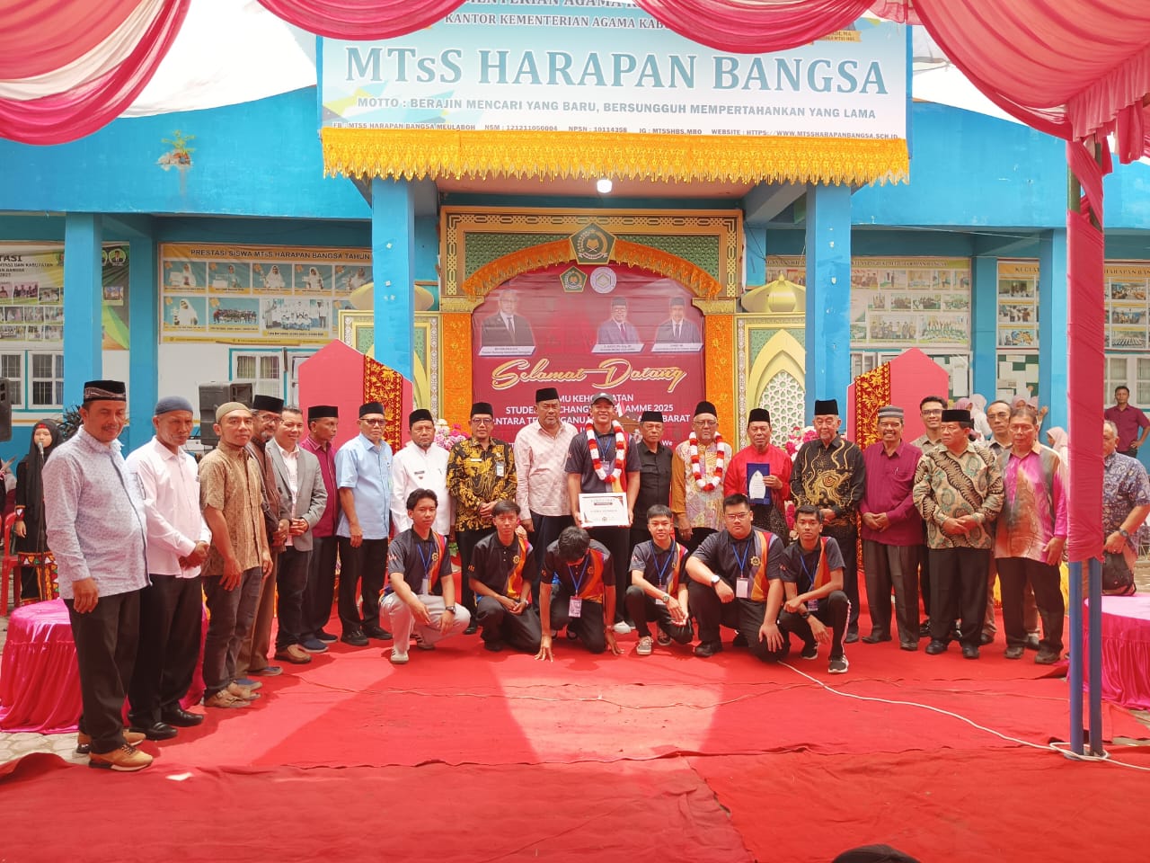 forumrakyat.co.id | Meulaboh – luar biasa para pelajar dan para tokoh Aceh barat antara lain H.Abrar ZYM SAg ( KA kANKEMENAG  Aceh barat) ,bapak   Suwandi MA kepala madrasah MTSs Harapan Bangsa, bapak Alaidin syah yang biasa disapa haji to turut hadir dalam menyambut tamu kehormatan yang berlangsung pagi tadi  tanggal 12 September 2025 di sekolah MTsS Harapan Bangsa Meulaboh Aceh barat.
