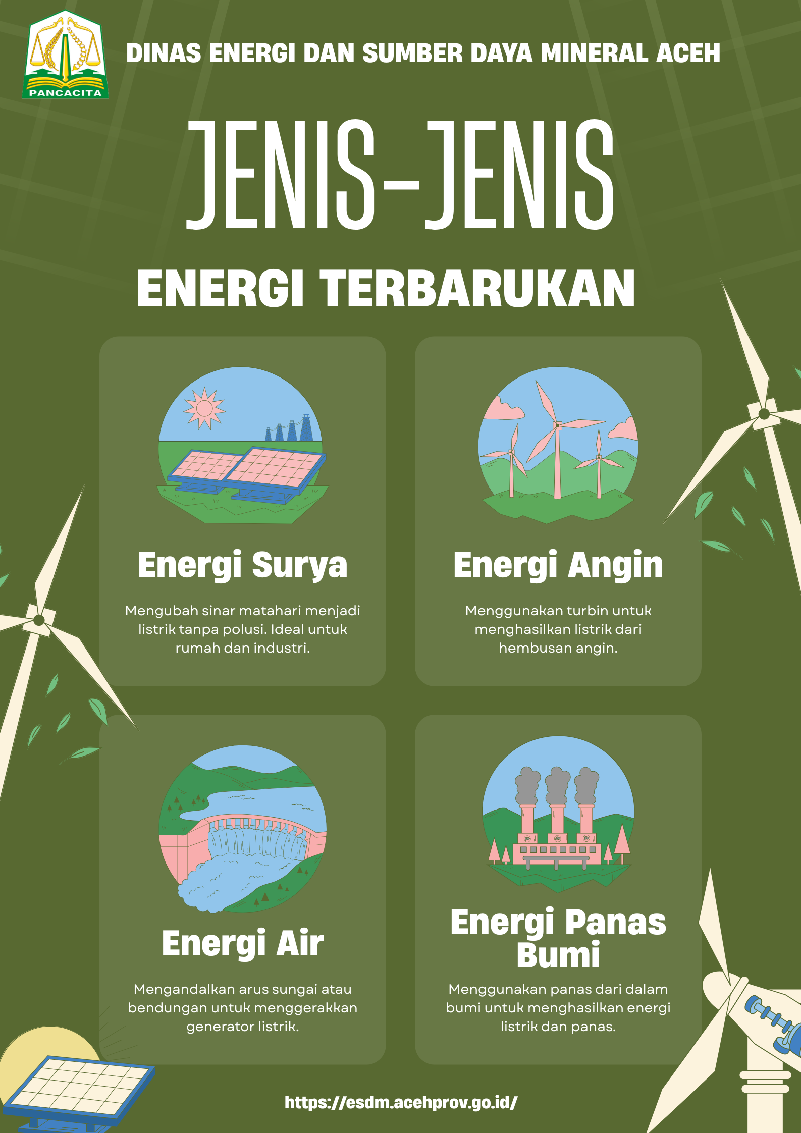 Jenis-Jenis Energi Terbarukan 10 November 20255 Maret 2026oleh Redaksioleh Redaksi Energi Baru Terbarukan Jangan LewatkanDWP Aceh Salurkan Bantuan bagi Keluarga ASN Terdampak BencanaMualem Minta Otsus Abadi 2,5 Persen di Hadapan Banleg DPR RI pada Rapat Perubahan UUPAMualem Tegaskan JKA Tidak DihapusJaringan Curanmor Banda Aceh Terbongkar, Pasutri dan Pelaku DitangkapKala Kak Na Mengantar Janji Merawat Asa di Pedalaman Aceh Utara