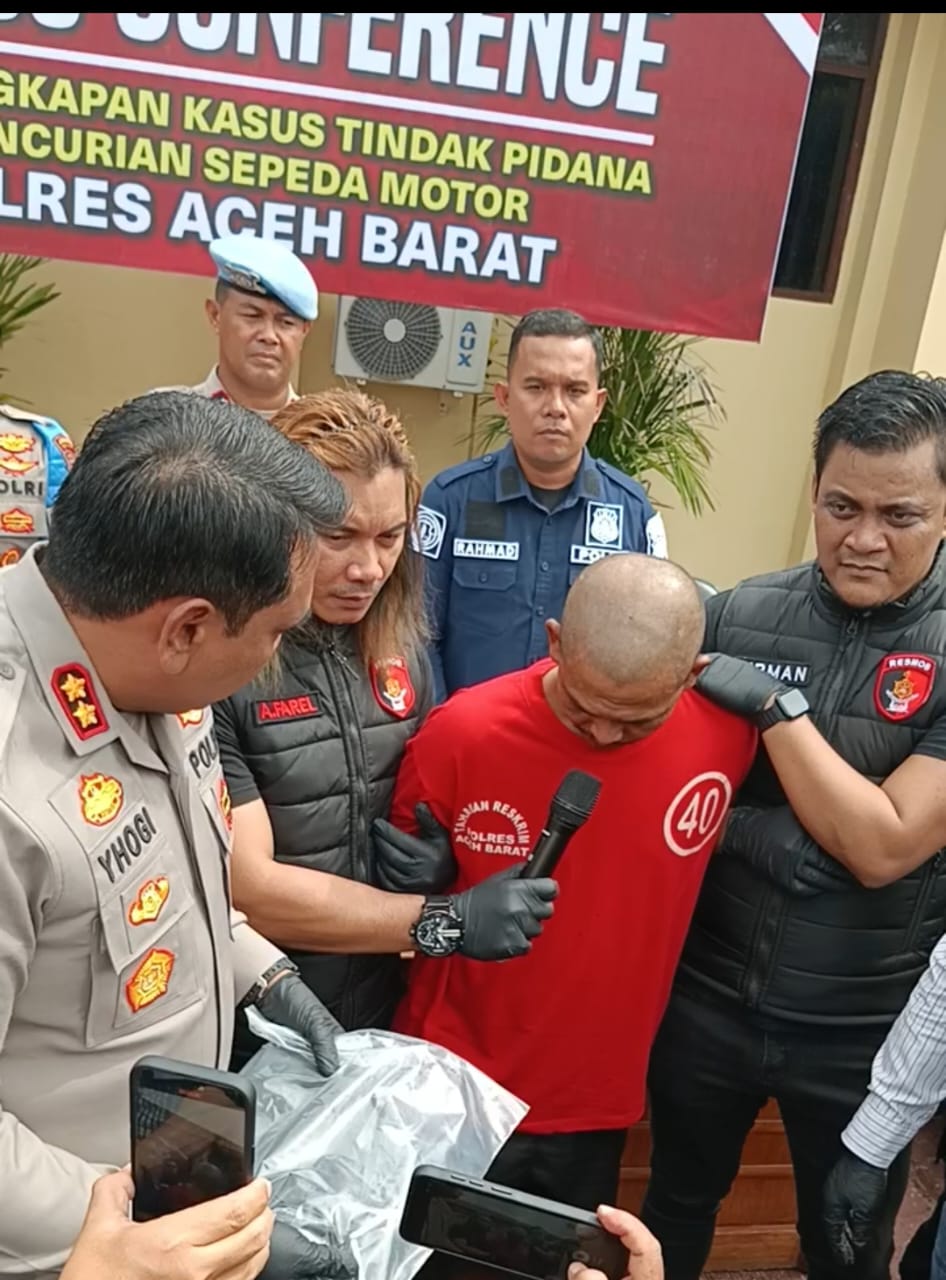 ‎Menurut AKBP Yhogi, aksi terakhir pelaku terjadi pada 4 November 2025 malam di Desa Gunong Kleng, Kecamatan Meureubo. Saat itu, pelaku mencoba mencuri sepeda motor yang terparkir di depan rumah warga dengan menggunakan kunci modifikasi berbentuk huruf T. Namun, aksinya dipergoki langsung oleh pemilik kendaraan yang kemudian berteriak meminta pertolongan warga sekitar.