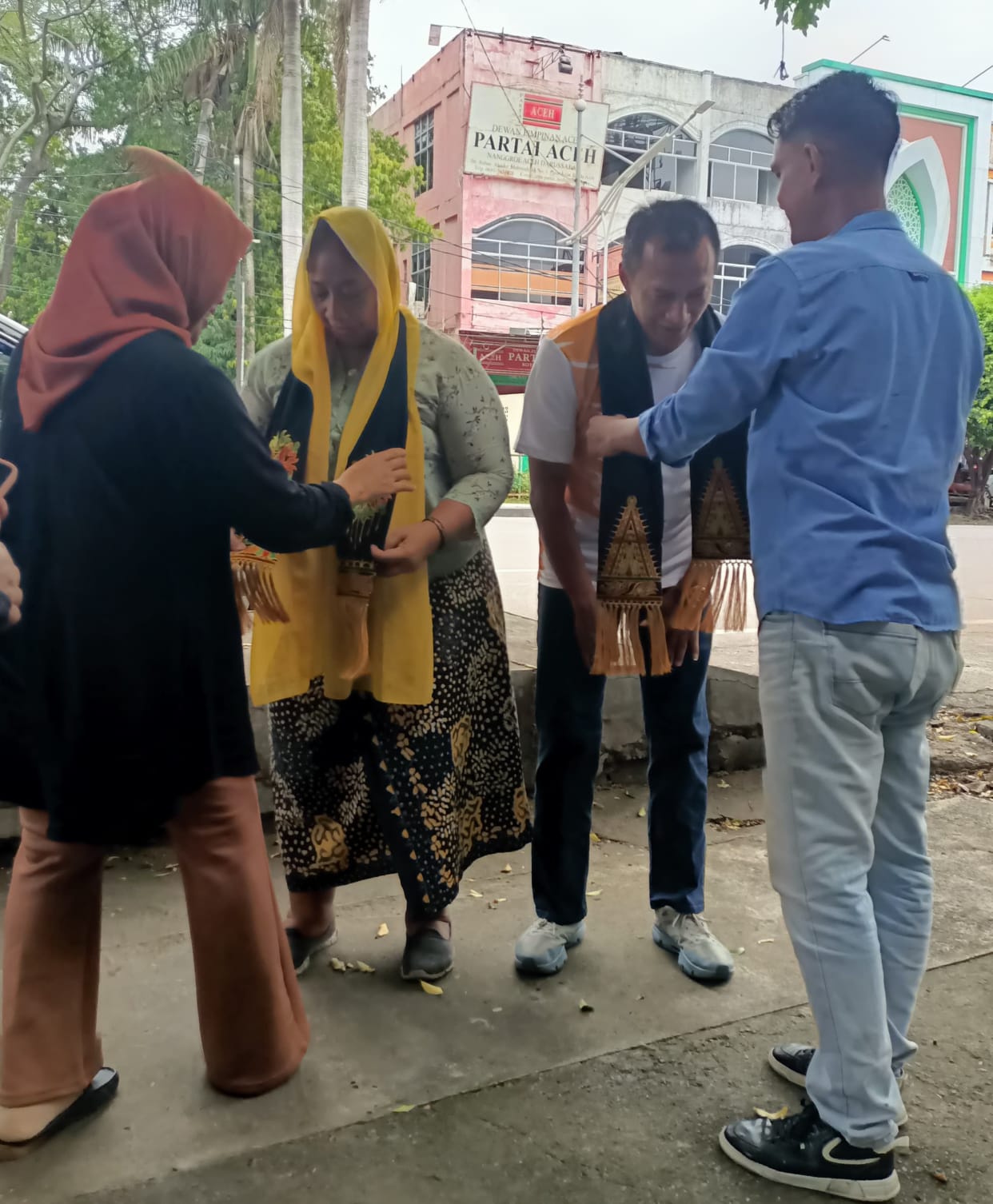Syal, atau kain selendang tradisional Aceh, yang diserahkan tersebut dikenal memiliki motif dan tenunan yang unik, melambangkan kekayaan budaya Serambi Mekkah.