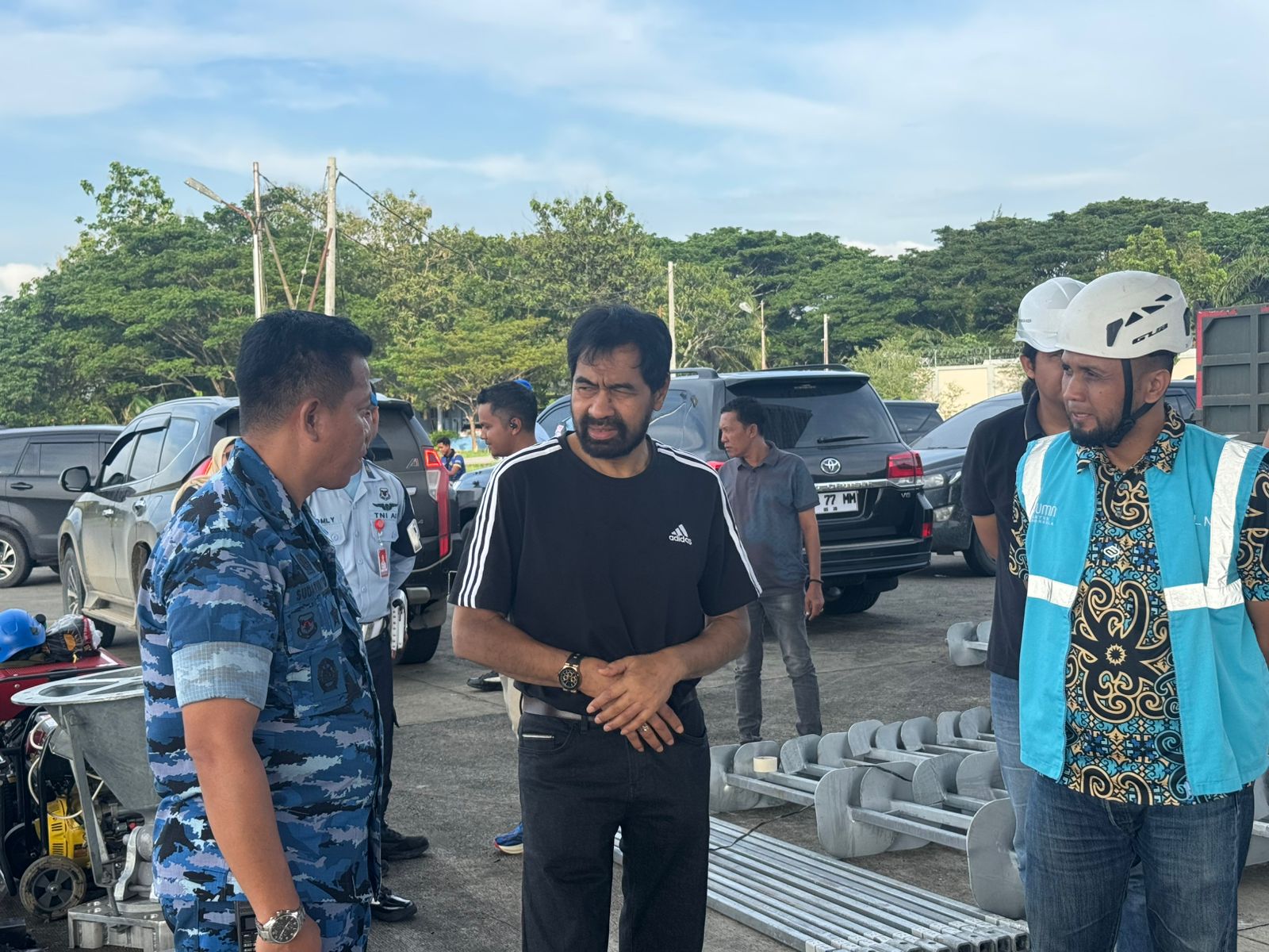 ACEH, FR ‐ Gubernur Aceh Muzakir Manaf atau Mualem meninjau langsung material tower pengganti untuk percepatan pemulihan kelistrikan Aceh yang tiba dari Jakarta menggunakan pesawat Hercules di Landasan Udara Sultan Iskandar Muda (Lanud SIM), Blang Bintang, Aceh Besar, Jumat (28/11/2025).