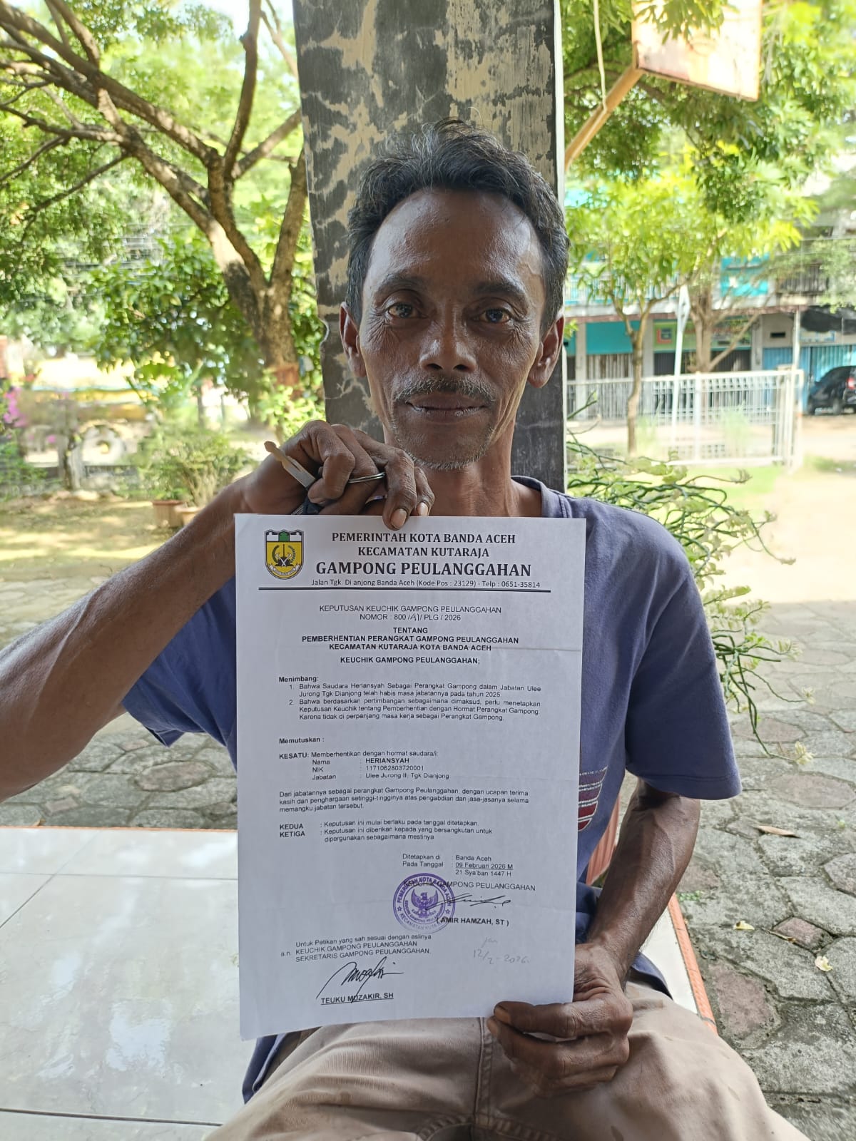 Heriansyah mengaku selama menjabat tidak pernah menerima SK pengangkatan sebagai perangkat gampong. Namun, ia justru menerima SK pemberhentian dari jabatan yang secara administratif tidak pernah ditetapkan secara resmi.