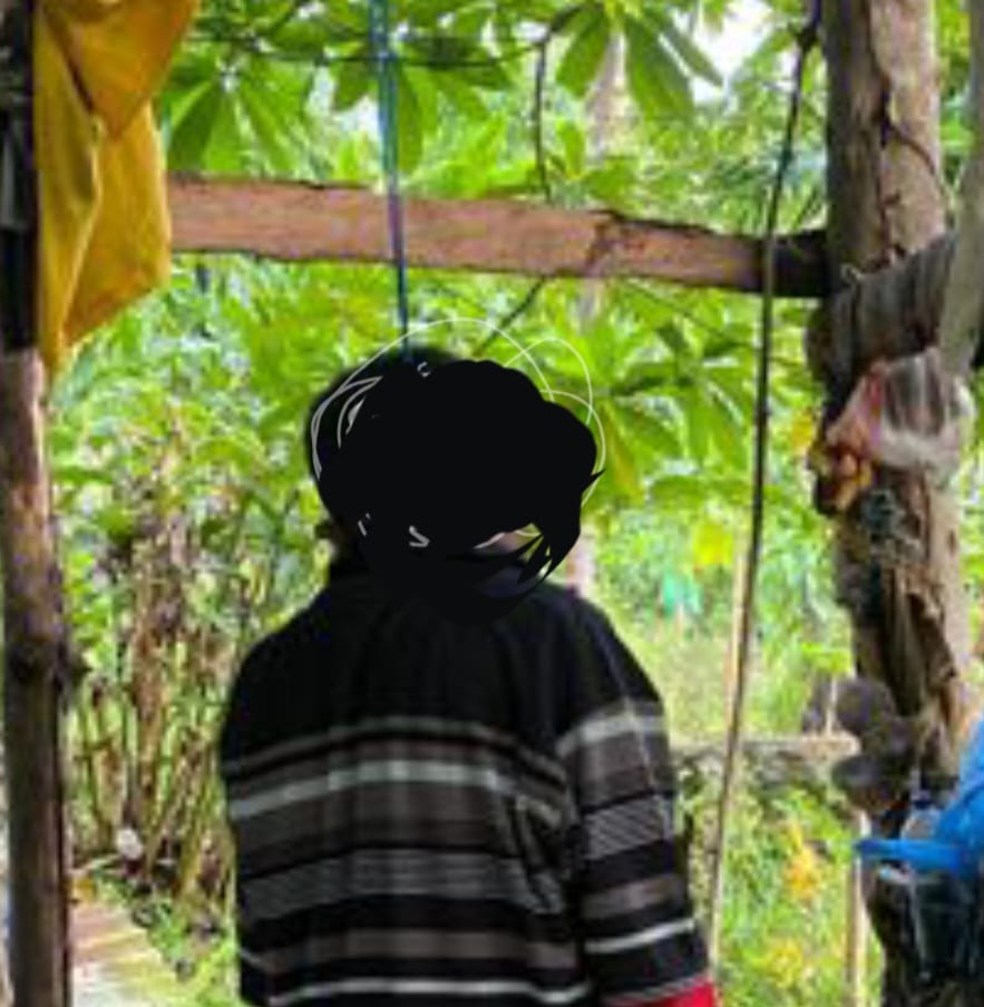 Kondisi korban masih tergantung di pohon dan meninggal dunia.