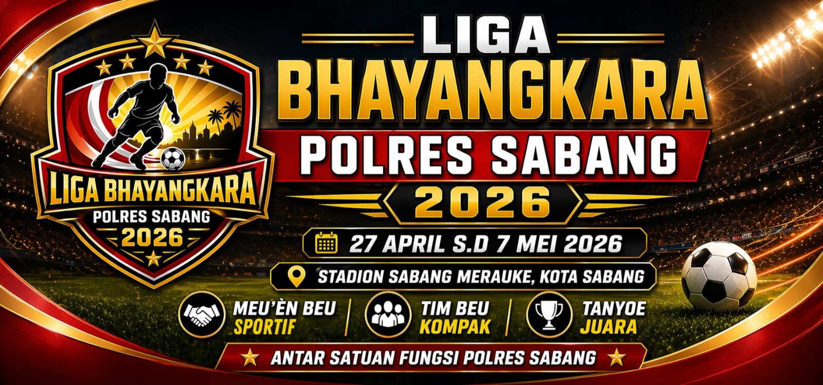 Polres Sabang mengundang seluruh masyarakat Kota Sabang untuk hadir, memberikan dukungan, dan bersama-sama menyukseskan Liga Bhayangkara Polres Sabang Tahun 2026. (Jalal)