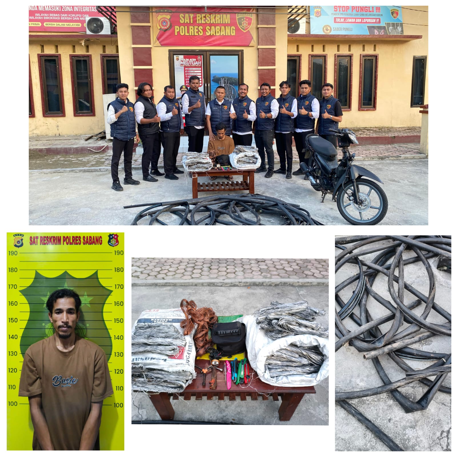 Kapolres Sabang melalui Kasat Reskrim Iptu Irvan, M.A., S.H., mengatakan pihaknya telah mengamankan seorang pria berinisial DM (34), warga Jurong Cot Kuala, Gampong Balohan, Kecamatan Sukajaya, Kota Sabang, yang diduga terlibat dalam pencurian kabel listrik jenis MVTIC 20 kV dengan penampang 240 mm2.